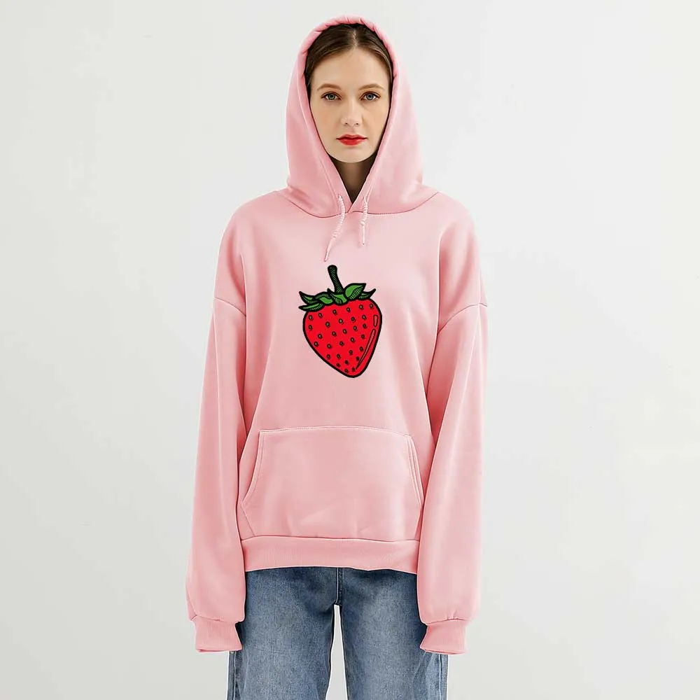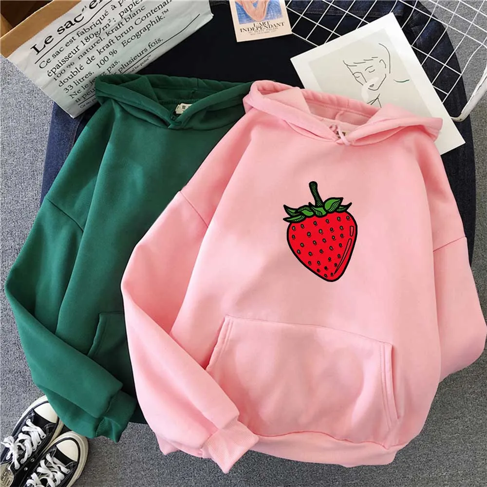 Милые толстовки с капюшоном клубнично-розовые толстовки для женщин большие размеры Мультяшные толстовки для женщин толстовка с длинным рукавом Пуловеры Топы