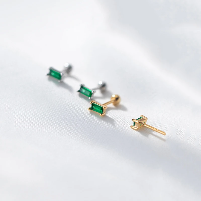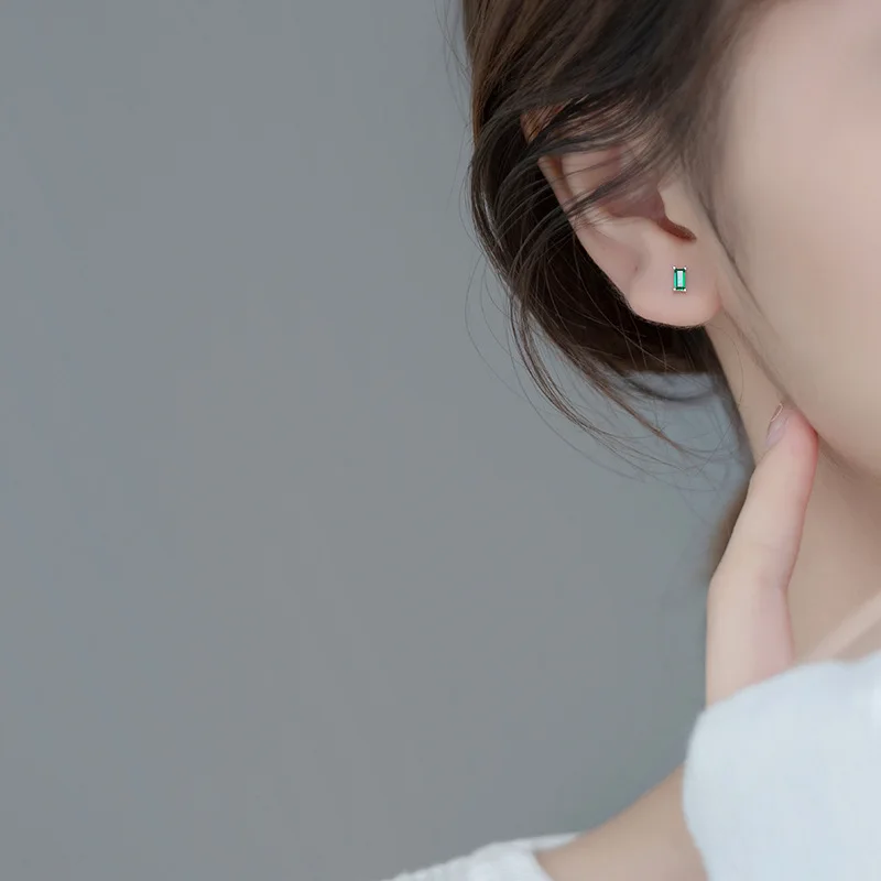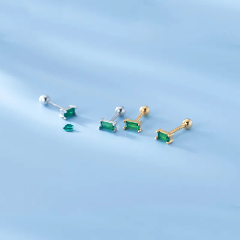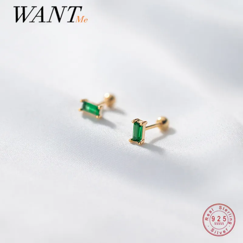 WANTME модные минималистичные серьги-гвоздики из стерлингового серебра 925 пробы с зелеными циркониевыми бусинами для женщин 2021 ювелирные изделия для тела для подроствечерние