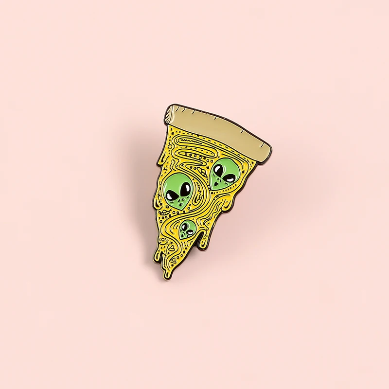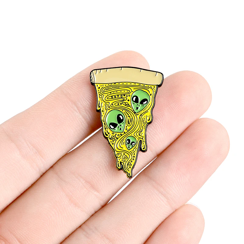 Эмалированная брошь в виде скелета, инопланетянин, призрак, гроб, Череп, булавка, Зеленый Инопланетянин, пицца, плащ, панк, индивидуальный значок, подарок на Хэллоуин