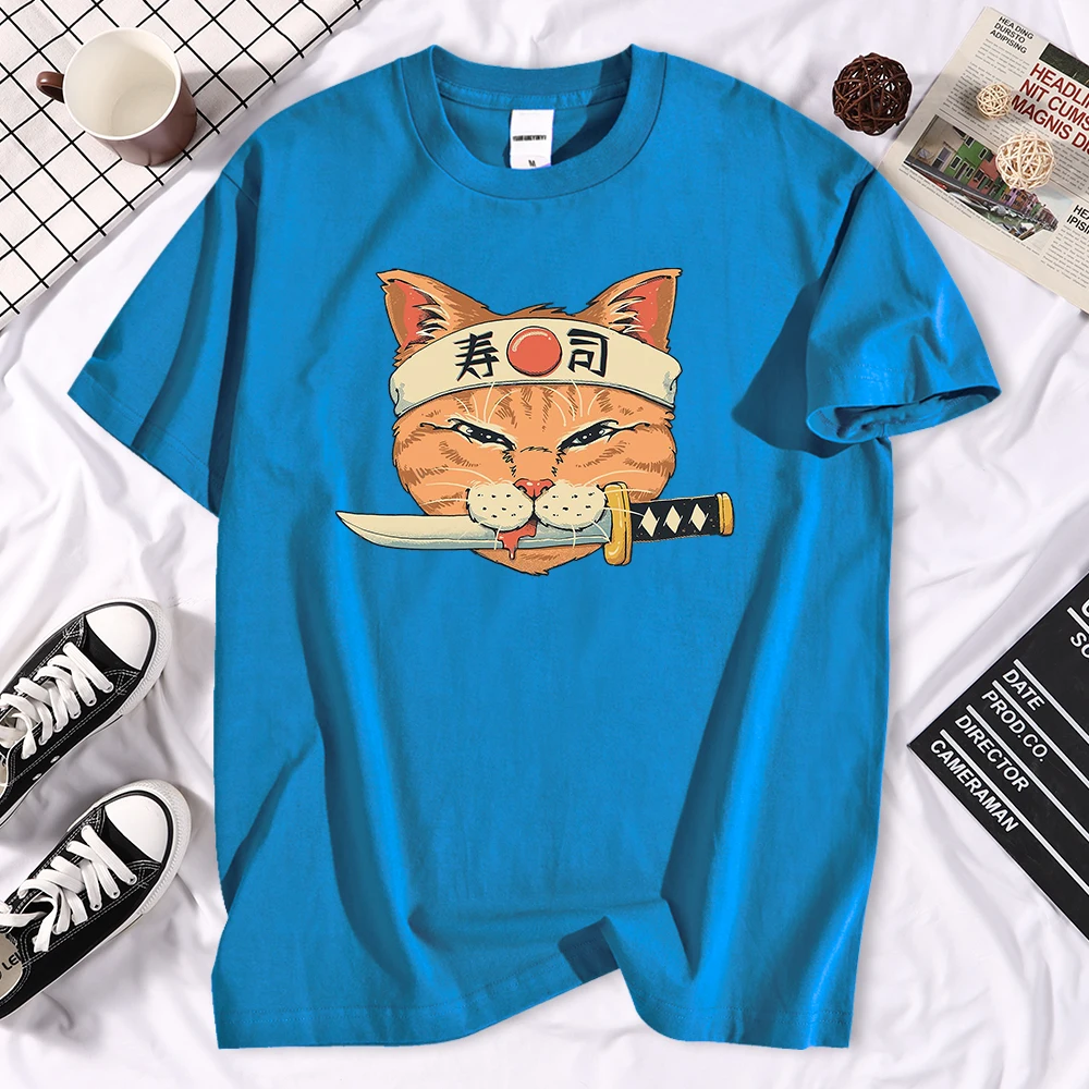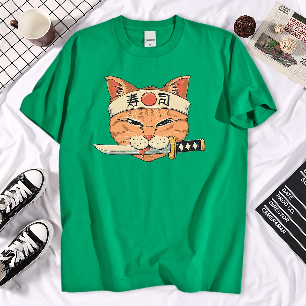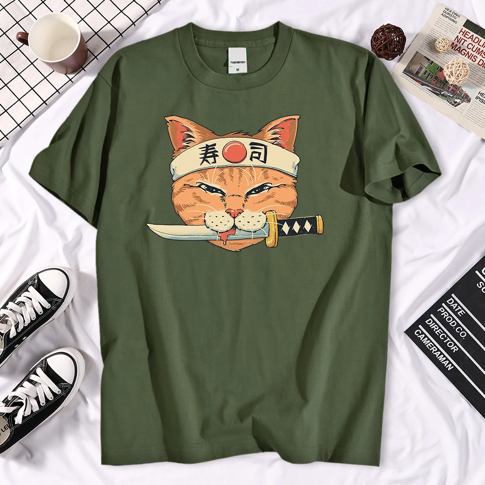 Catana В рыцарском стиле суши-кошка печать мужская футболка Стиль повседневные футболки модные футболки оверсайз простота футболка с круглым вырезом для мужчин футболка