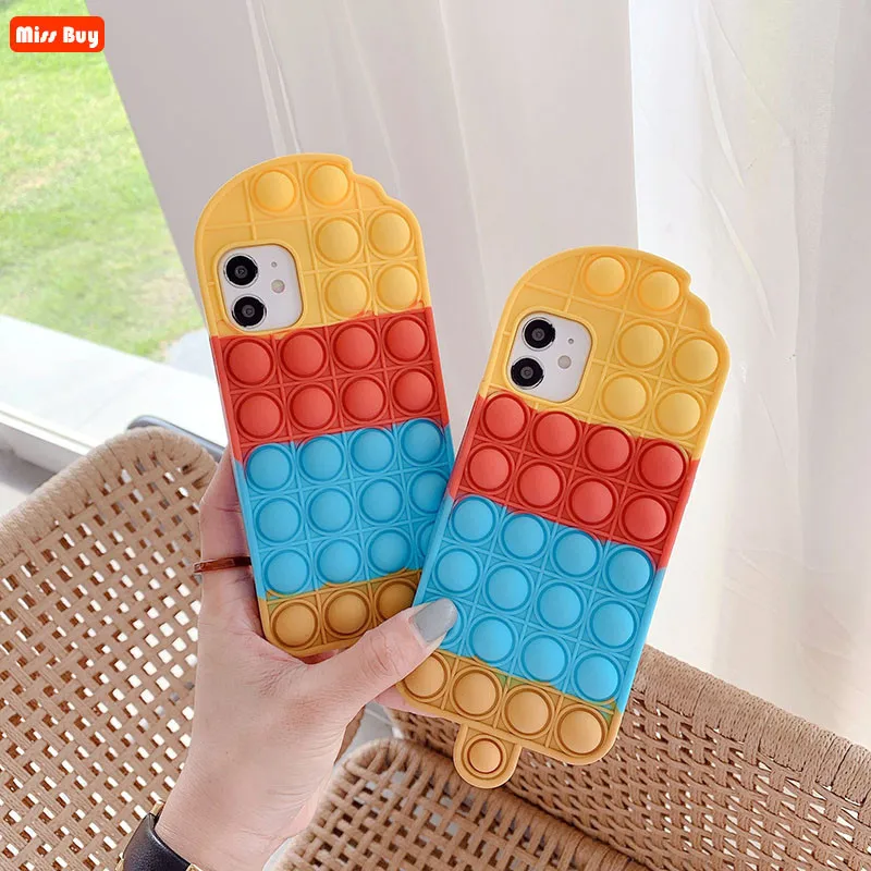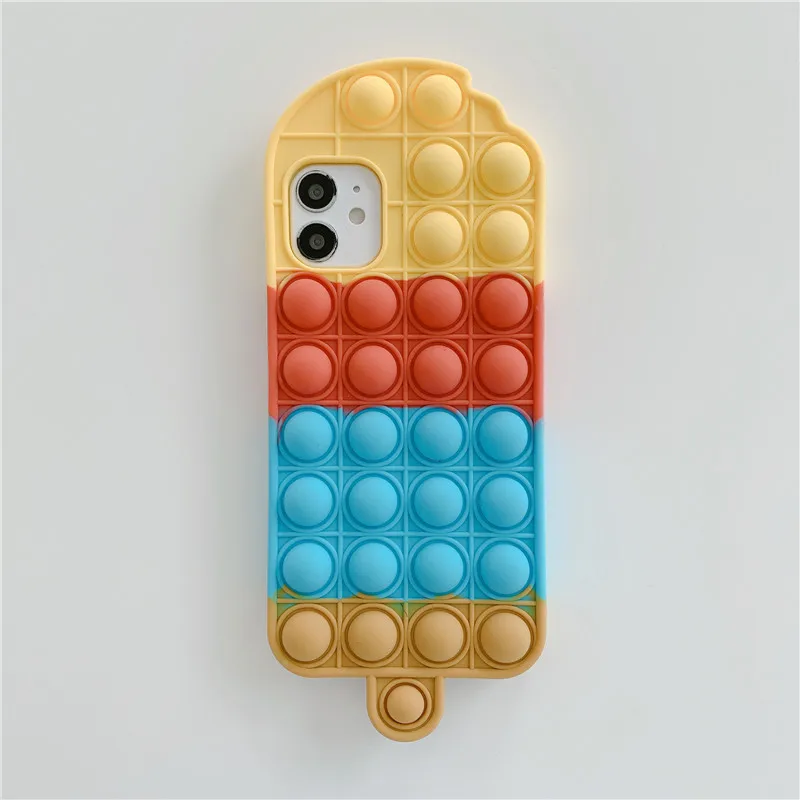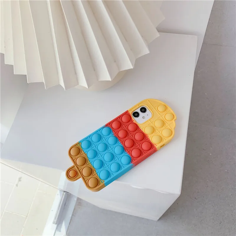 Силиконовый чехол Cartoom 3D с милым радужным мороженым для iPhone 12 11 Pro Max 7 8 Plus X XR XS, чехол с пузырьками для снятия стресса
