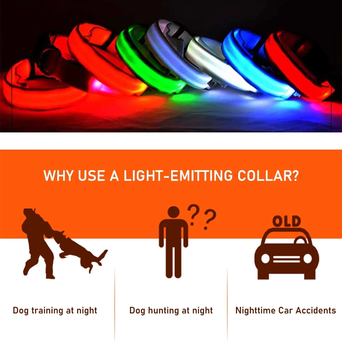 Светильник вой ошейник для собак, щенков, светодиодный, USB зарядка, защита от потериавтомобильной аварии, нейлоновый, поводки собачьего ошейника светодиодный, товары для животных