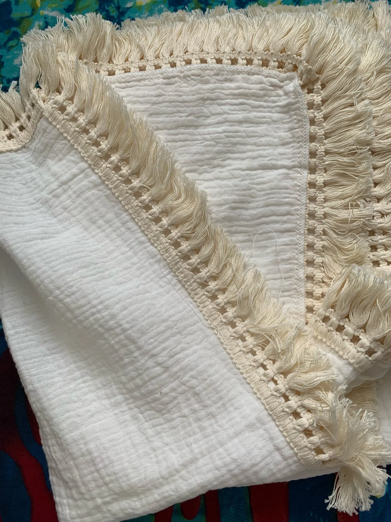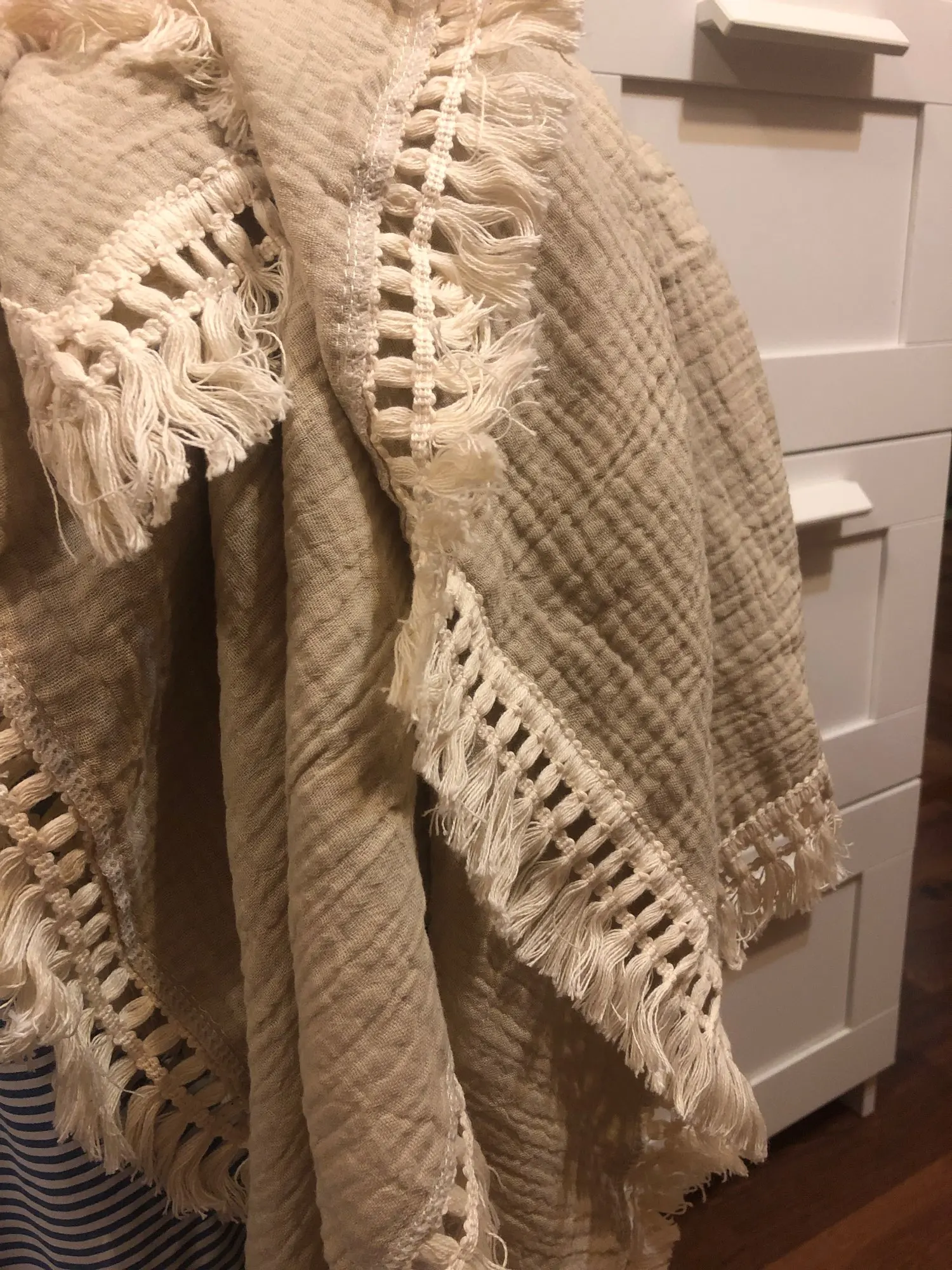 Красиво и мило! Бахрома придаёт нежности этому покрывалу. Инстамамочки точно оценят для фото) спасибо продавцу!