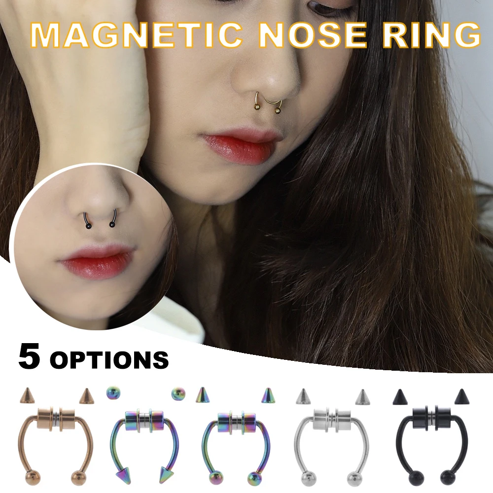 2021 Поддельный Пирсинг Кольцо в Носу Сплав Пирсинг в Носу Обруч Кольца Перегородки Для Женщин Ювелирные изделия для тела Подарки Мода Магнитный Поддельный Пирсинг