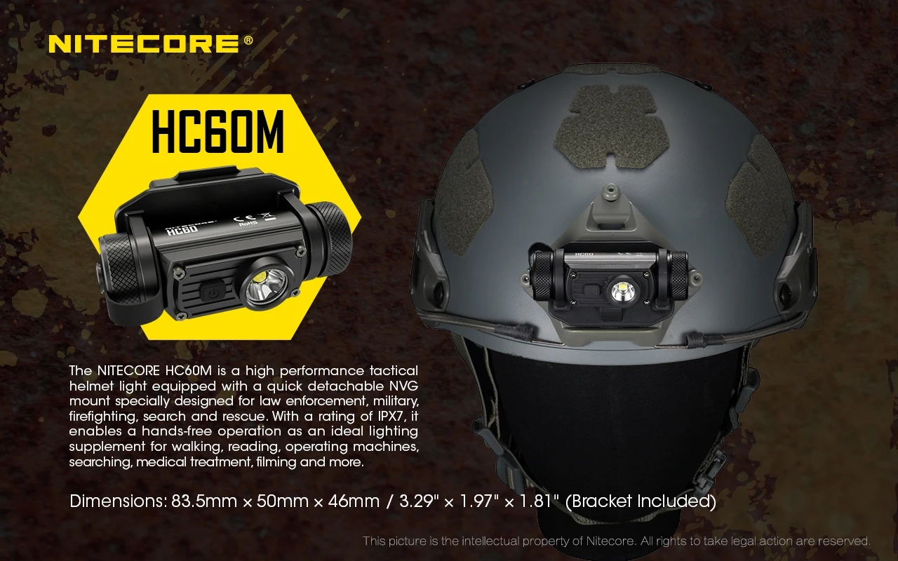 Бесплатная доставка nitecore HC60M 1000Lm CREE U2 светодиодный с NVG крепление 18650 Перезаряжаемые шлем с батареей светильник Водонепроницаемый путешествия Outdoorg