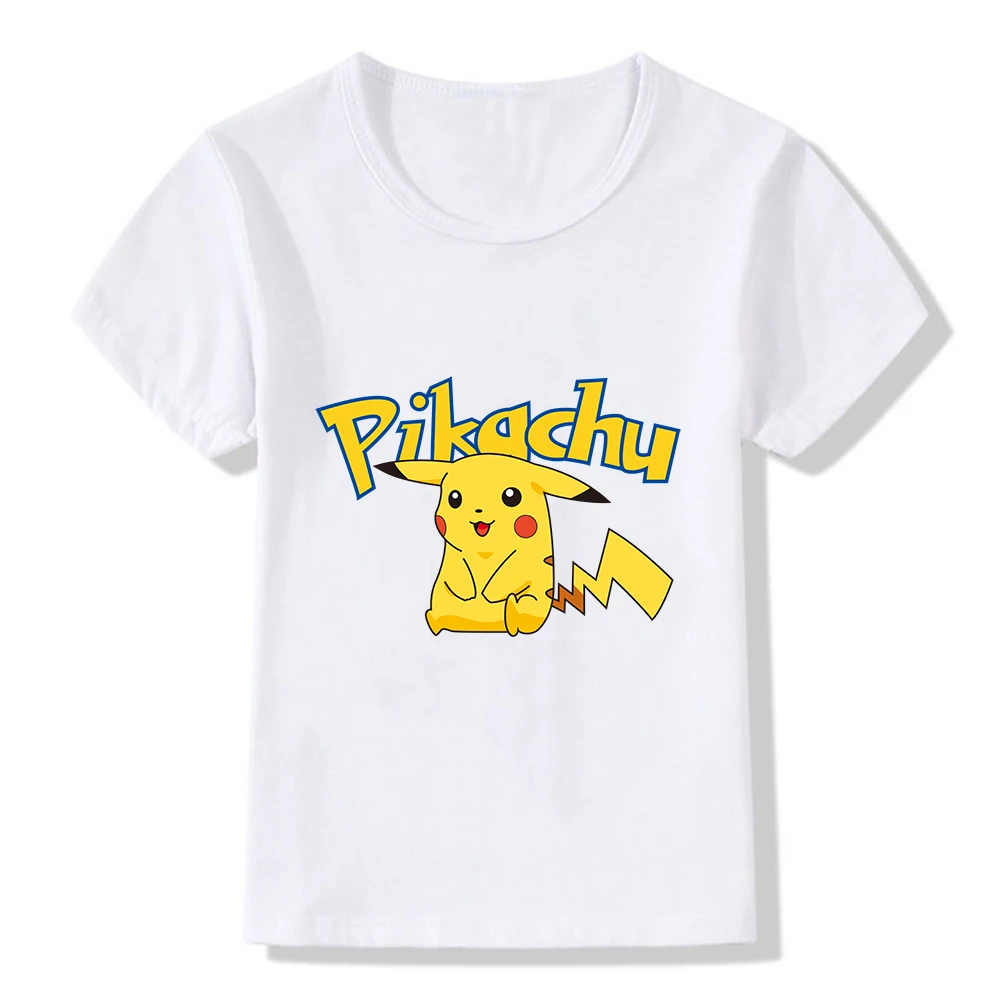 Детская футболка с изображением покемона Пикачу, футболка с мультяшным принтом, одежда для мальчиков и девочек с фигурками животных, топы, детские костюмы, подарки на день рождения
