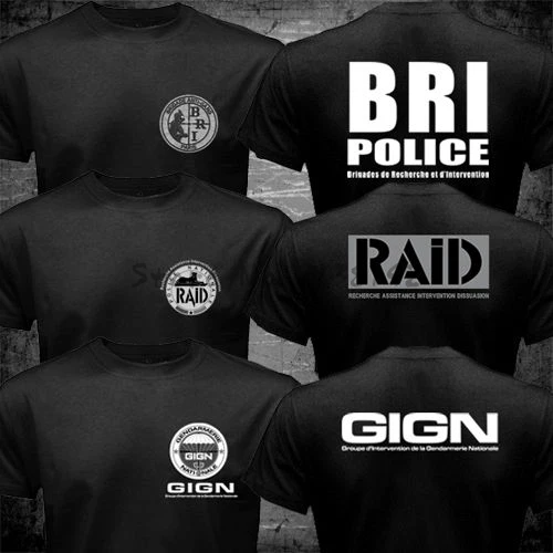 Мужская футболка с коротким рукавом, черная футболка из 100% хлопка с французским спецназом элитной полиции группы GIGN Raid BRI