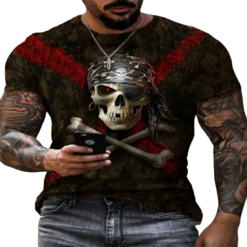 Футболка мужская с круглым вырезом, модная повседневная тенниска в стиле Харадзюку, с коротким рукавом, с 3D-принтом черепа, лето 2021