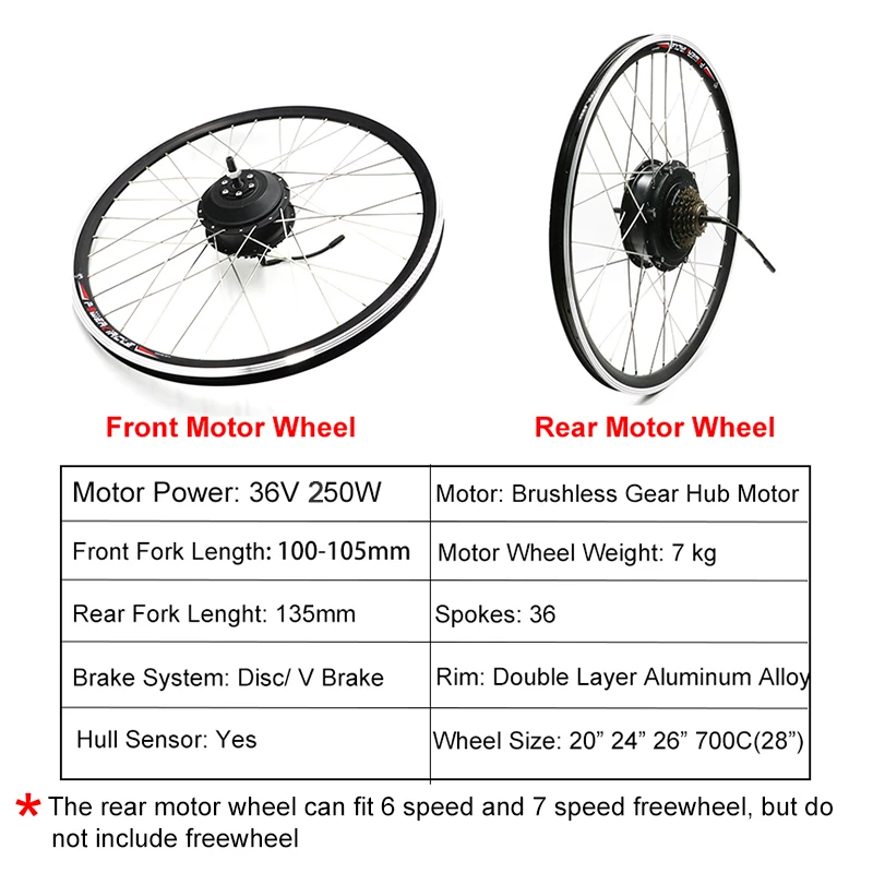 1. Передний двигатель/задний мотор2. Размер обода: 20 ", 24", 26 ", 27,5", 700C(28 "), если клиенту нужен другой размер, пожалуйста, свяжитесь с продавцом3. Дроссельная заслонка: большой палец/половина «ГАЗа»/поворотЕсли вы не оставите нам сообщение, мы выберем для вас тормозной рычаг и дроссель большого пальца. Спасибо!