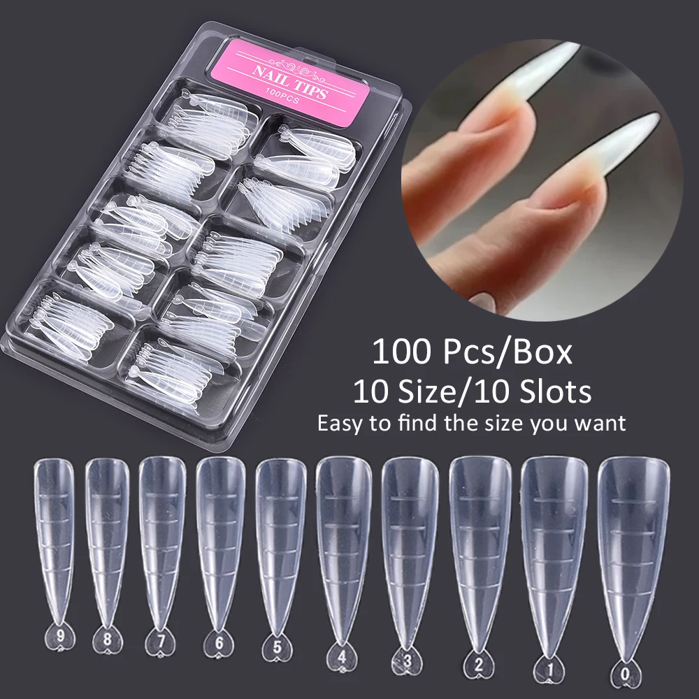 100 шт.кор. полностью накладные ногти гель быстрое строительство плесень палец наращивание ногтей УФ гель инструменты Пресс на ногти 10 размеров с зажимами