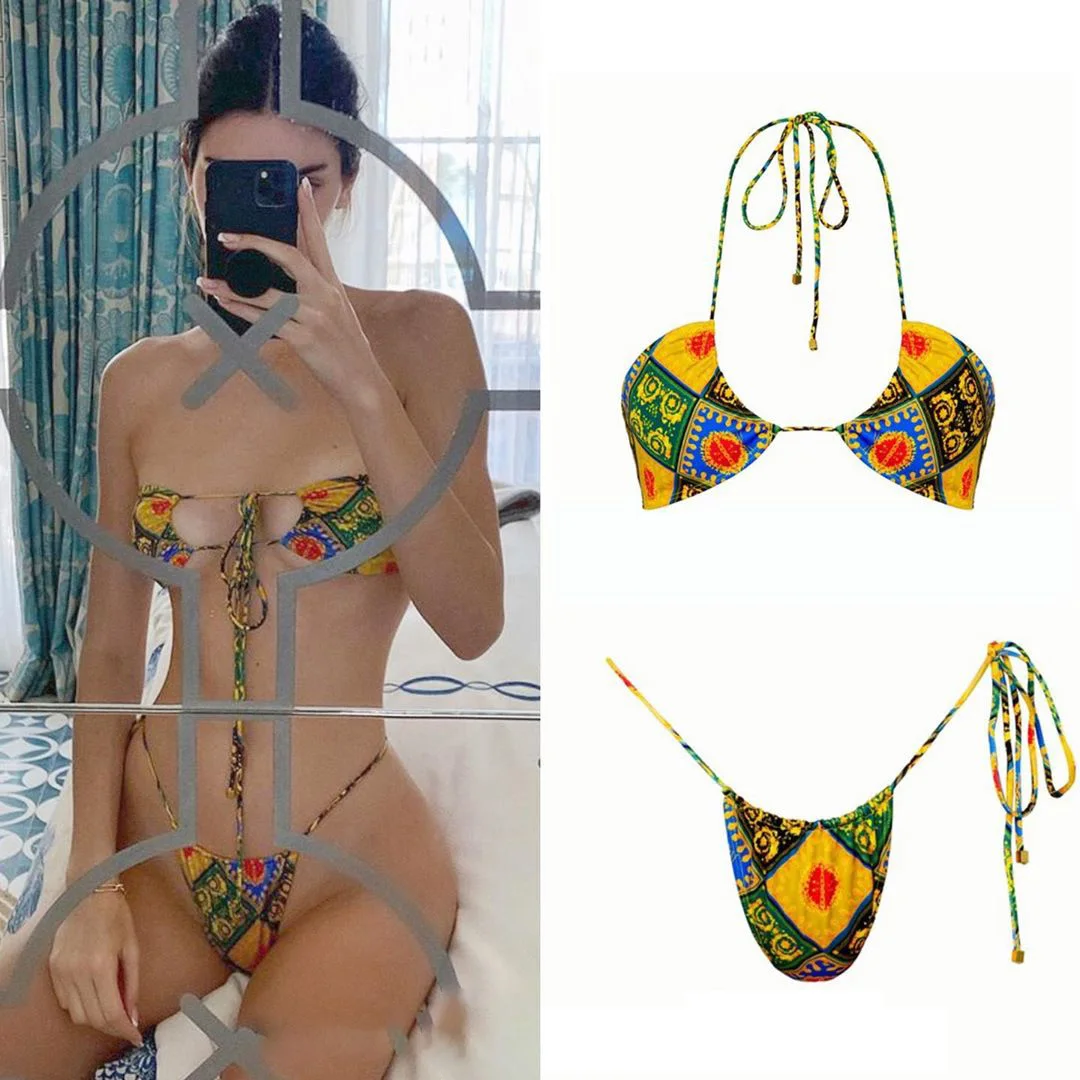 Цветочный Топ, бикини, летний купальник, Женский бразильский комплект бикини, женское кружевное бикини, купальник