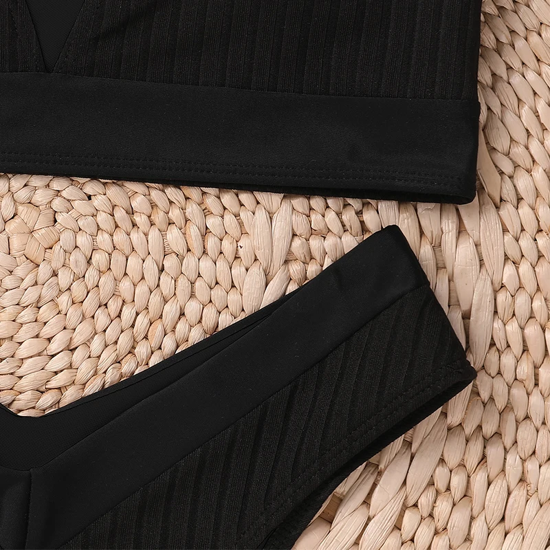 2021 сексуальный купальник-бандо в рубчик, комплект бикини с пуш-ап, черный купальник, женский купальный костюм с высоким вырезом, купальный костюм, спортивная пляжная одежда