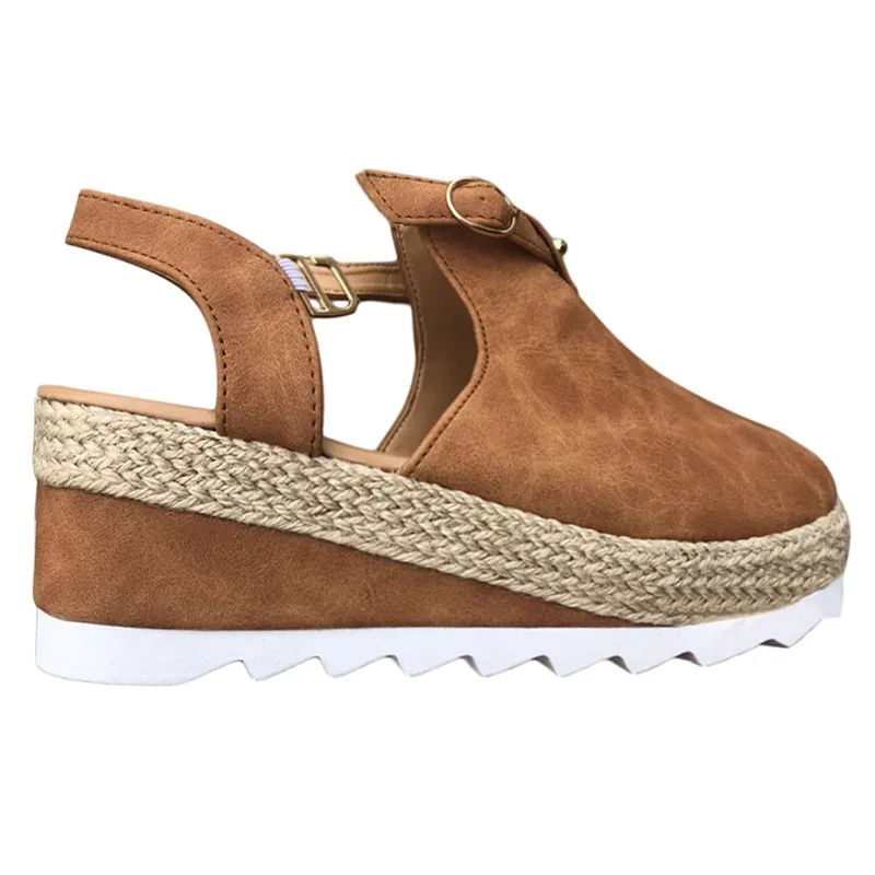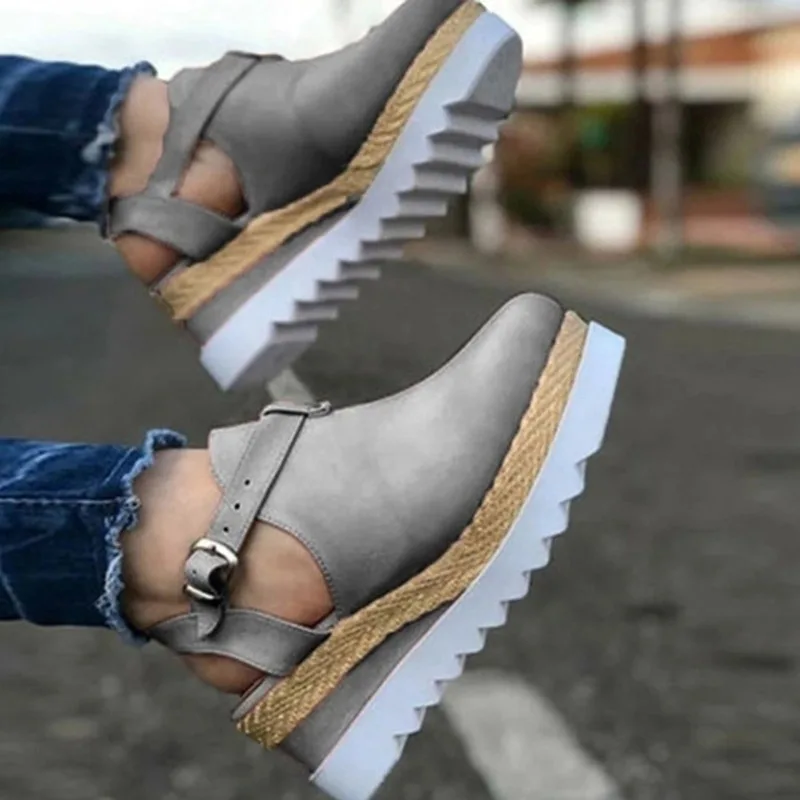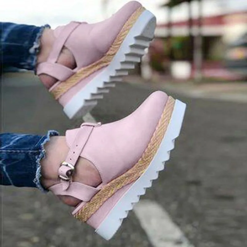 Сандалии женские на платформе, винтажные босоножки на толстой подошве, танкетка, пряжка, ремешок, соломка, флок, летняя обувь
