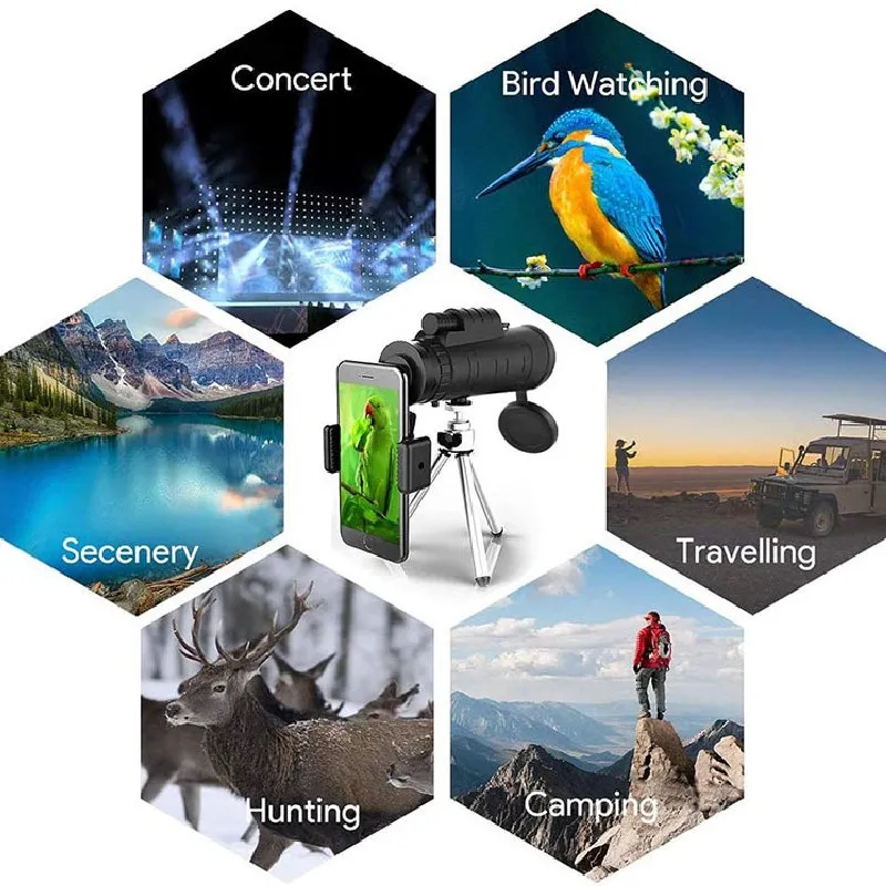 Портативный Монокуляр 40 х60, портативный призматический бинокль с линзами высокого разрешения, со смартфонами, для кемпинга на открытом воздухе