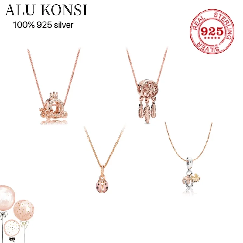 Подходит для оригинальный роскошный 925 стерлингового серебра Аутентичные сковорода ожерелье для женщин из розового золота высокое качество, модное ювелирное изделие, подарок на свадьбу