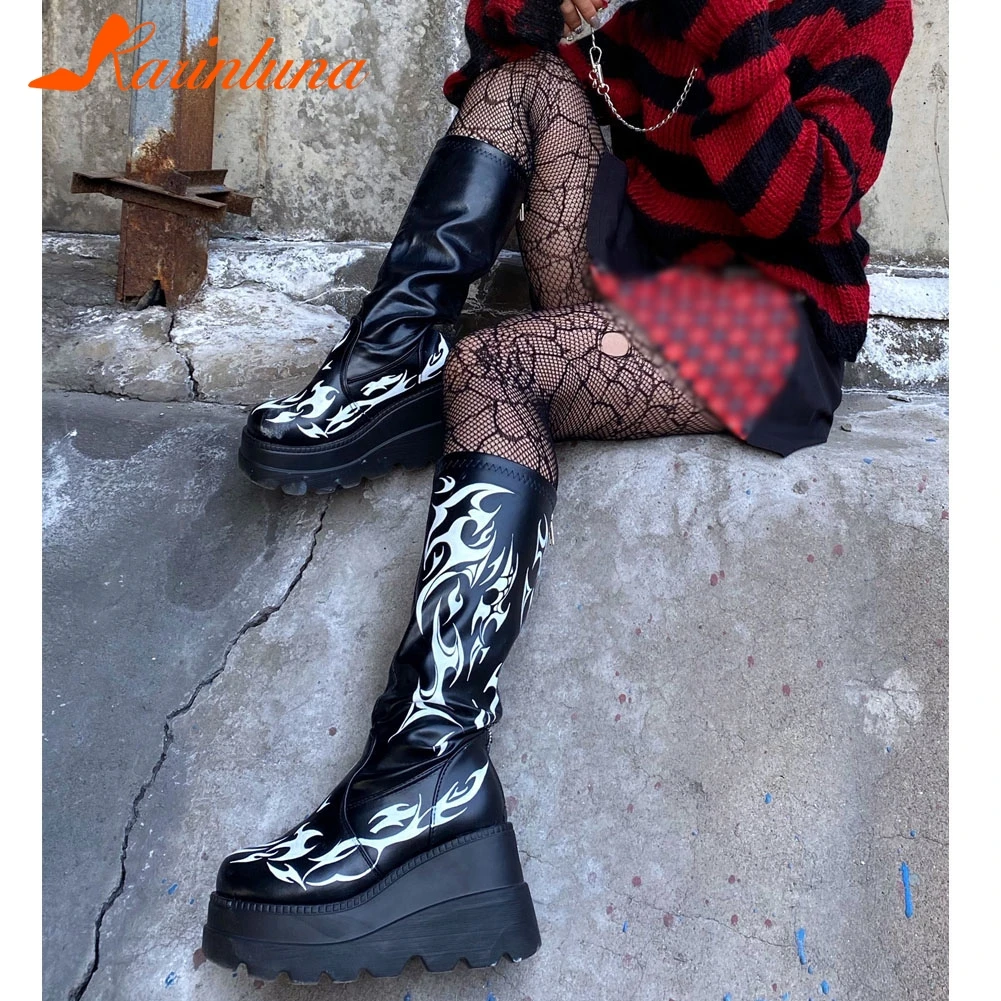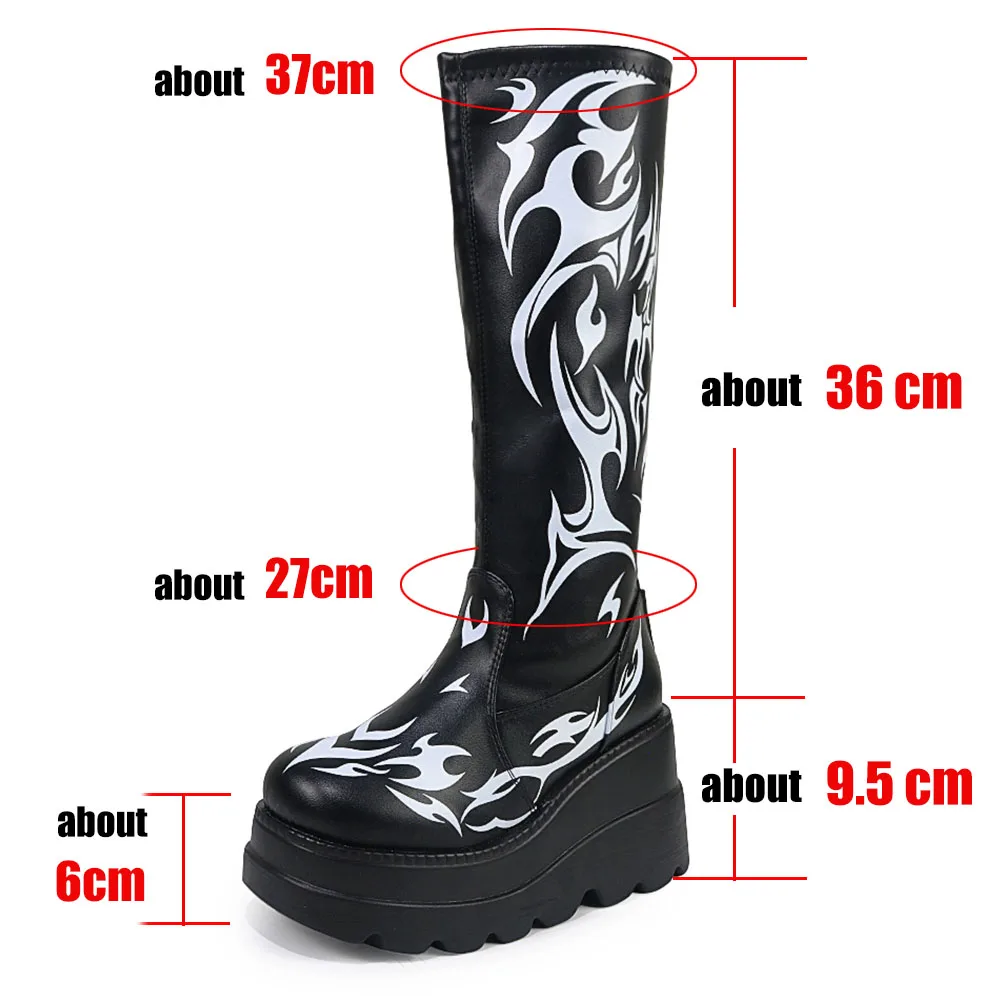 Ботинки женские, на высокой платформе, с принтом, в готическом стиле, на молнии, большие размеры 35-43