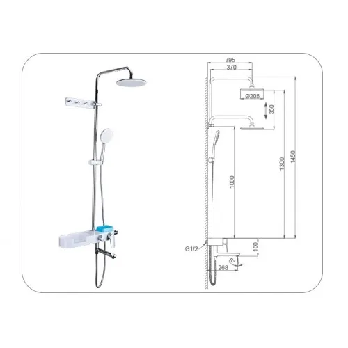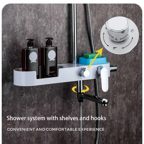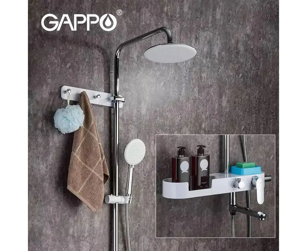 GAPPO G2467, Душевая система с полкой и крючками, тропический душ, латунь, белыйхром