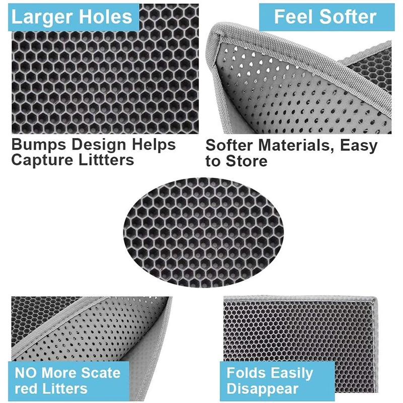 Коврик для кошачьих туалетов: двухслойная сотовая конструкция поможет вам собрать мусор. Вы просто берете коврик, и весь мусор падает, а затем высыпаете его обратно в ящик для мусора, чтобы он утилизировался. Больше никаких мусор не прилипает к моим ногам на ежедневной основе! Большие отверстия достаточно большие, чтобы ловить и ловить мусор. Подходит для множества типов пометов и коробок для помета kitty, с капюшоном, самоочищающаяся коробка для мусора.