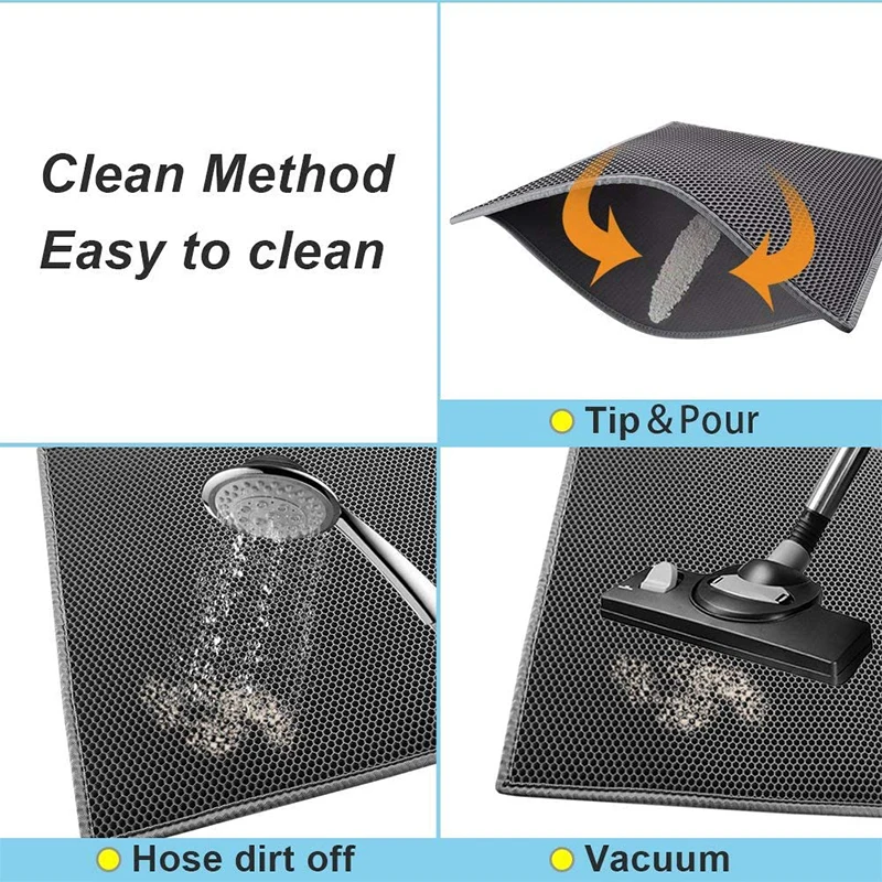 Мягкий на лапах и легко отпустите помет: большой коврик для захвата, удобный на нежных лапах. Наш мягкий материал эва нежен для чувствительных кошачьих лап. Кошки даже любят ходить или иметь Повтор после обеда. Двойные слои позволяют просеивать и собирать мусор на дне. Встряхивание позволяет легко выпустить мусор.
