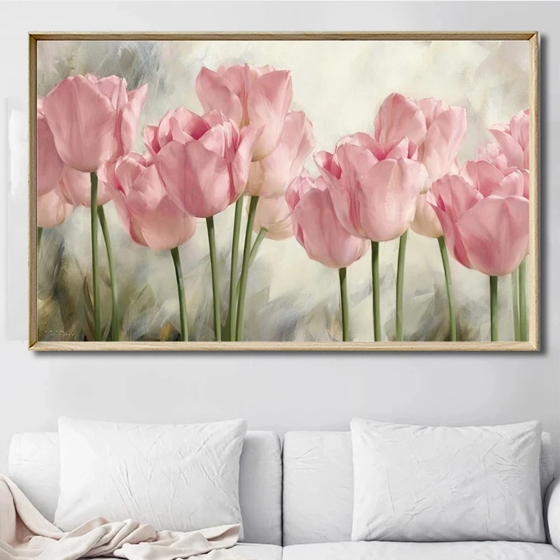Классические розовые цветы тюльпана картина маслом на холсте настенная живопись художественные плакаты и принты настенные картины для Гостиная украшение дома