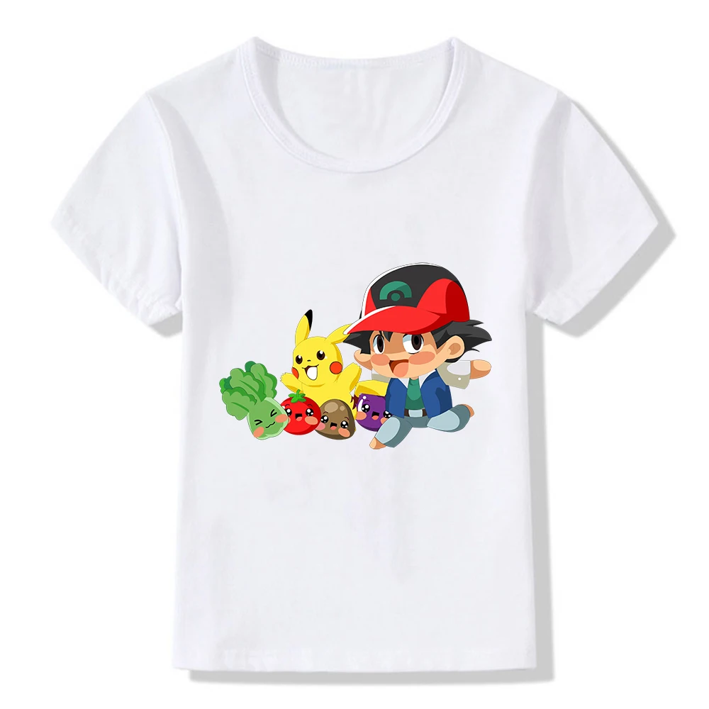 Детская футболка Pokemon Pikachu Ash Ketchum, модная футболка с мультяшным принтом для мальчиков и девочек, фигурки животных, подарки на день рождения, одежда, топы