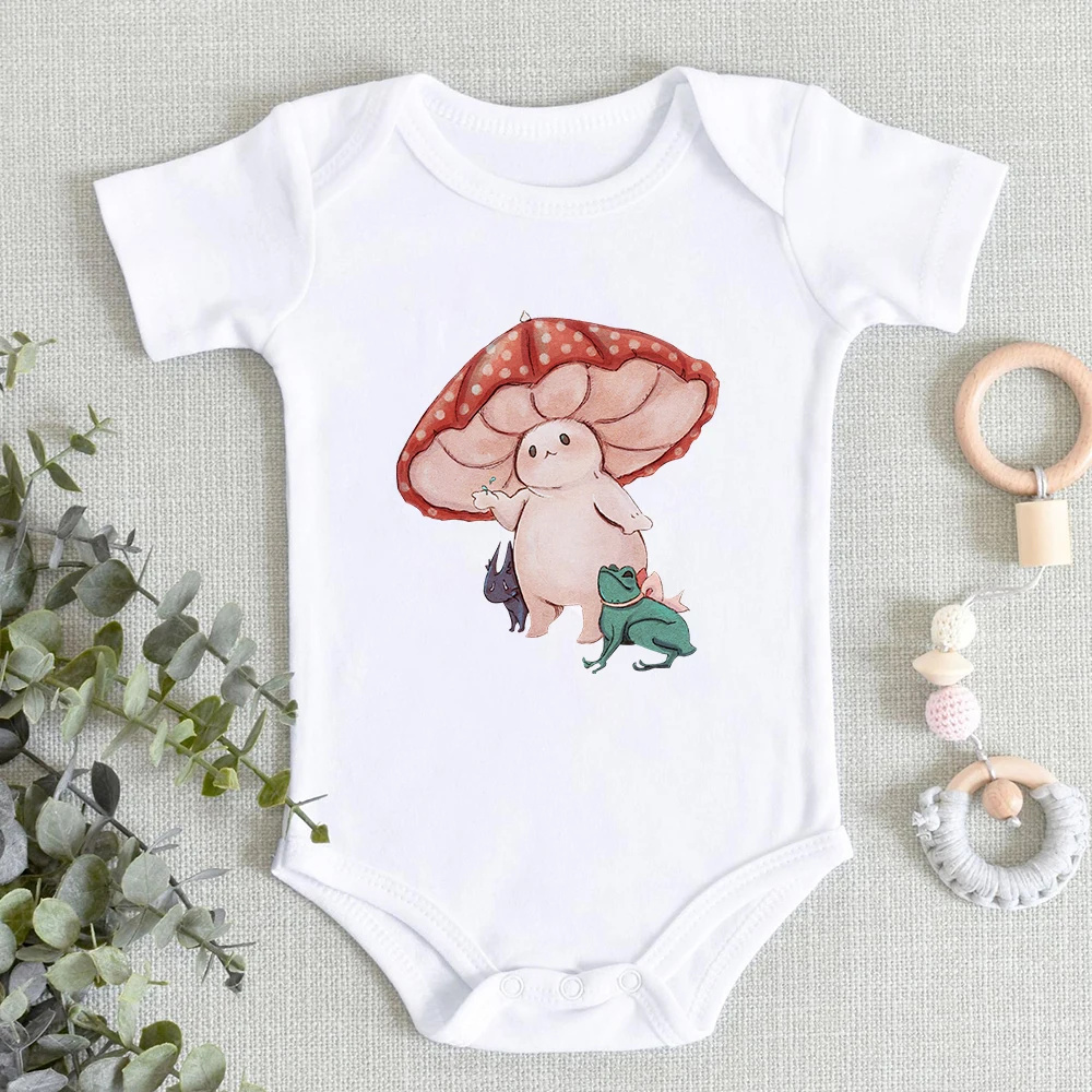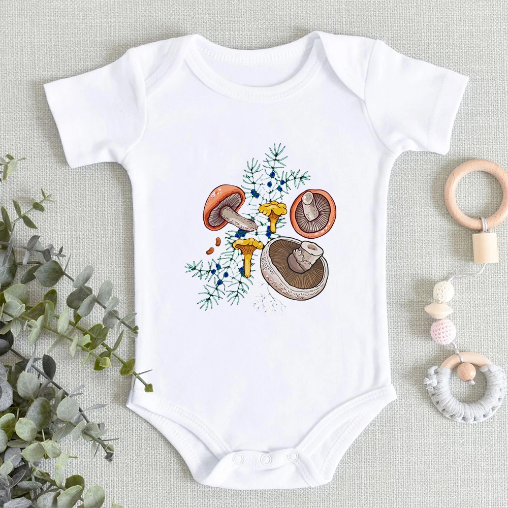 Милая мультяшная детская одежда с грибами, модное летнее боди для новорожденных мальчиков и девочек, летняя повседневная одежда для двух малышей, базовый белый топ