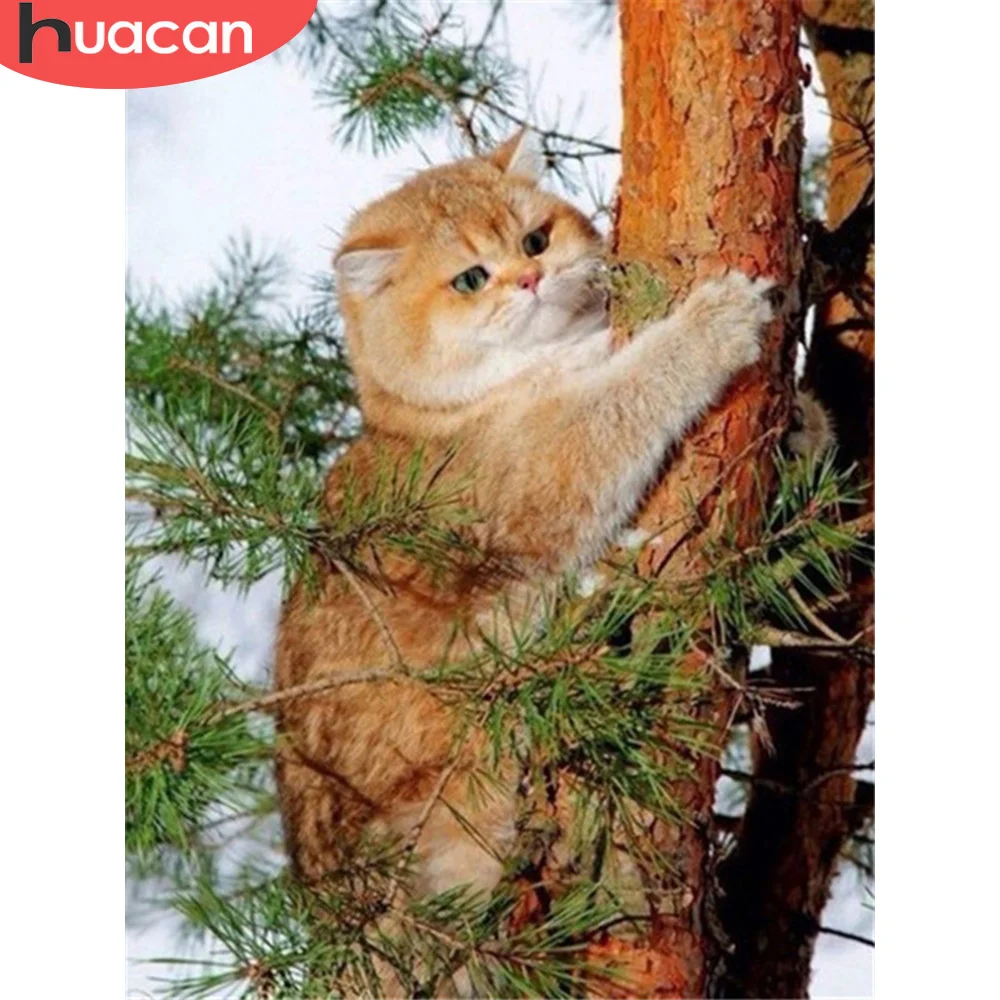 HUACAN новая Алмазная вышивка кошка 5d алмазная картина животное полный квадратный круглый стразы картина, Алмазная мозаика домашний декор