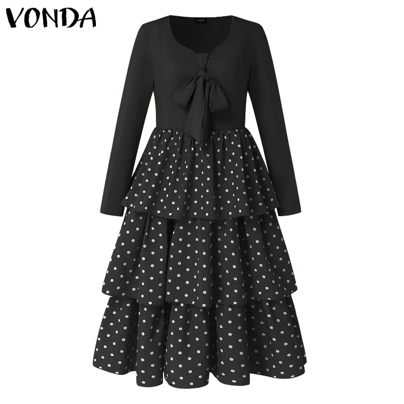 VONDA 2022 осеннее платье с мешковатым подолом, повседневное винтаж...