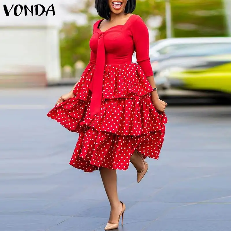 VONDA осеннее богемное платье для женщин, повседневное длинное плат...