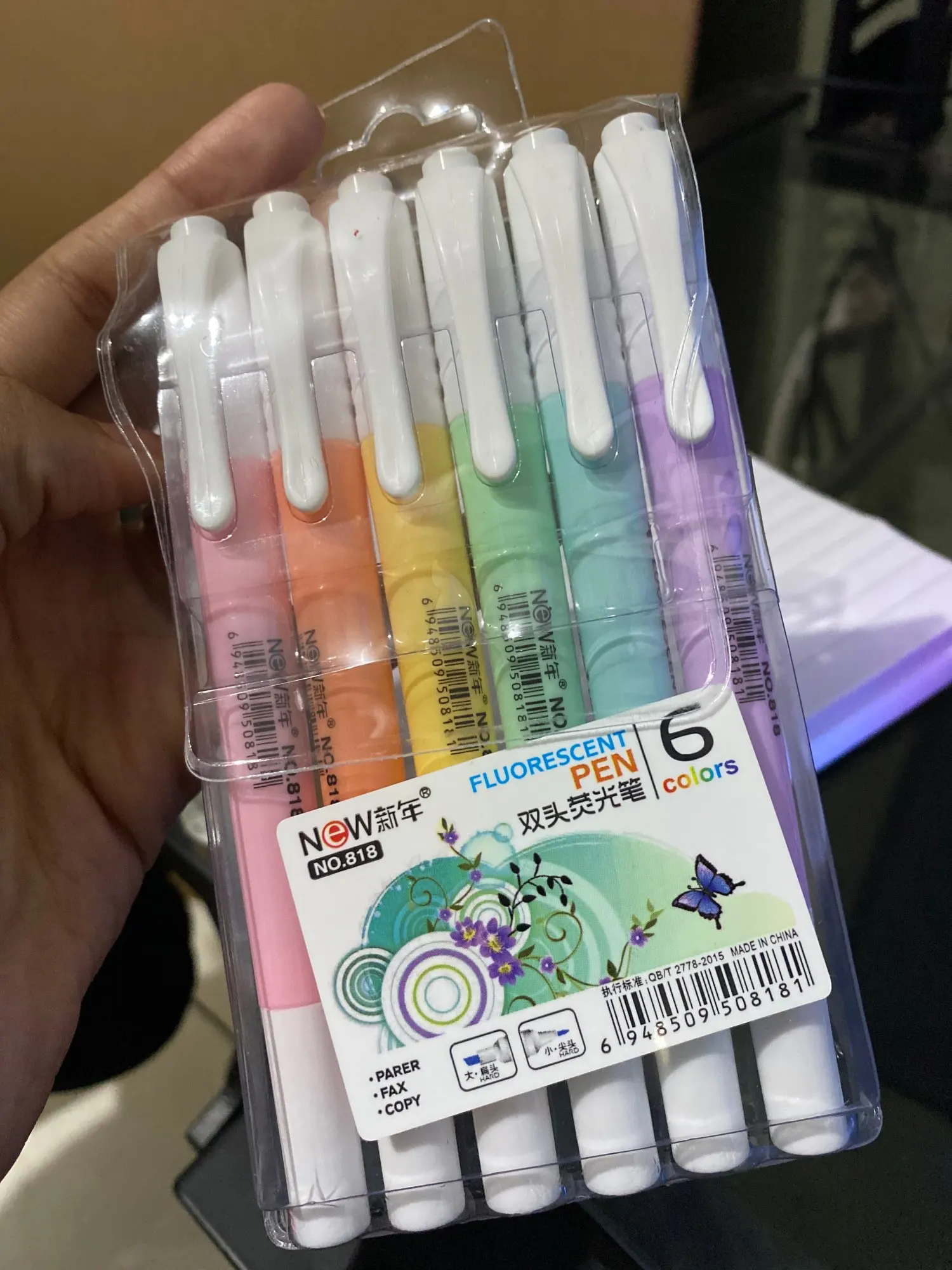 6 шт.партия с двойной головкой флуоресцентный маркер ручка маркеры пастельных чертежная ручка для студент, школа, офис поставки Симпатичные канцелярские принадлежности