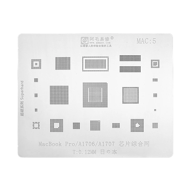 Трафарет Amaoe MAC5 BGA для Macbook Pro A1706 A1707 CPU RAM WIFI POWER NAND Chip IC Tin Plant Net Steel Mesh нагревательный шаблон 0,12 мм