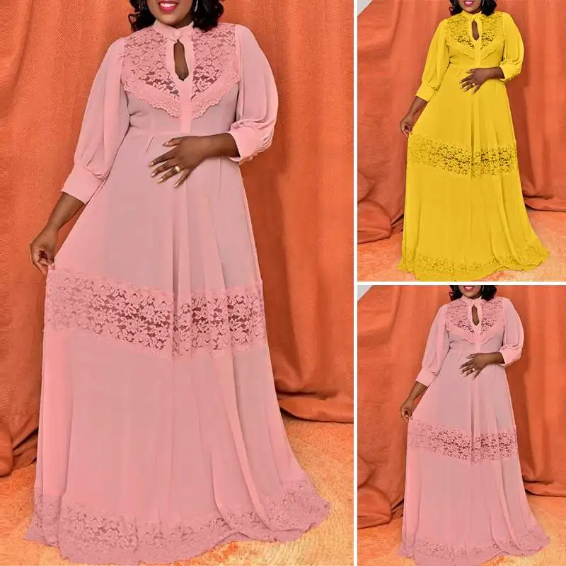 Длинное платье-макси, повседневное кружевное ажурное длинное платье...