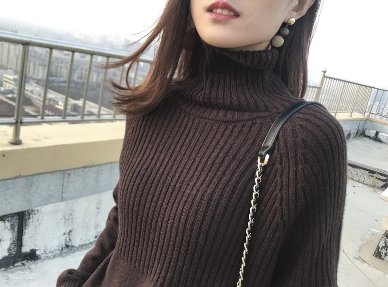 Осенний женский свитер с высоким плотно облегающим шею воротником, ...