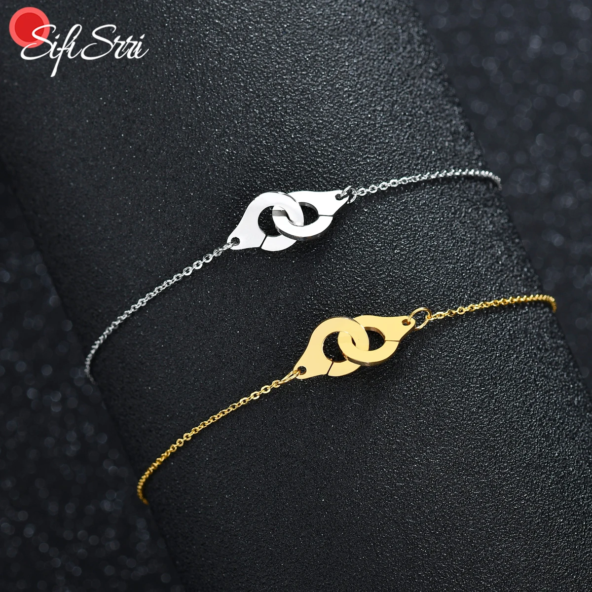 Sifisrri Initial браслет наручники цепочки из нержавеющей стали с твердым замком унисекс на запястье для женщин и девушек на День святого Валентина ювелирные изделия в подарок