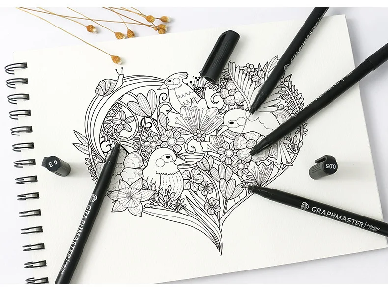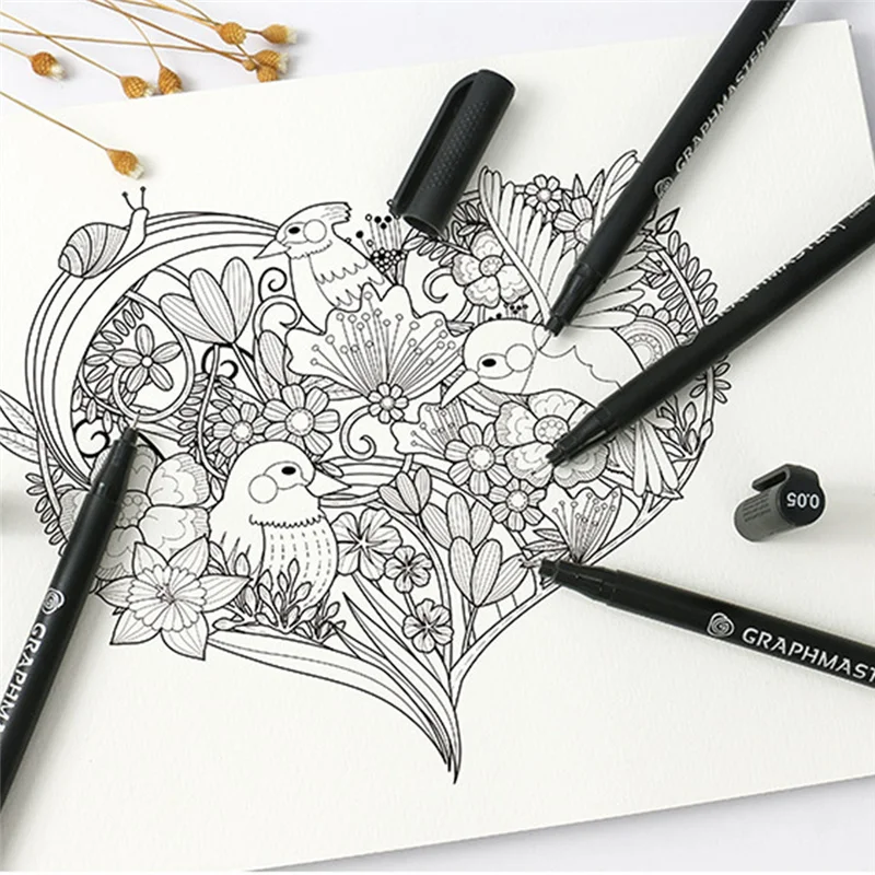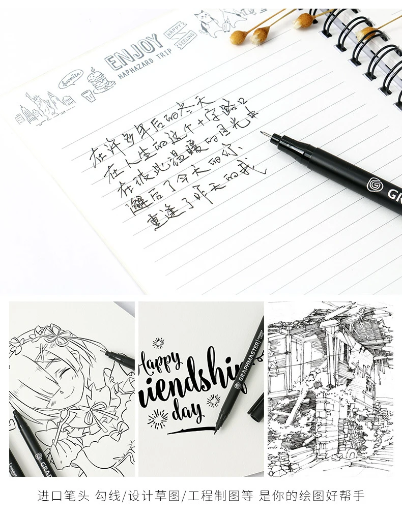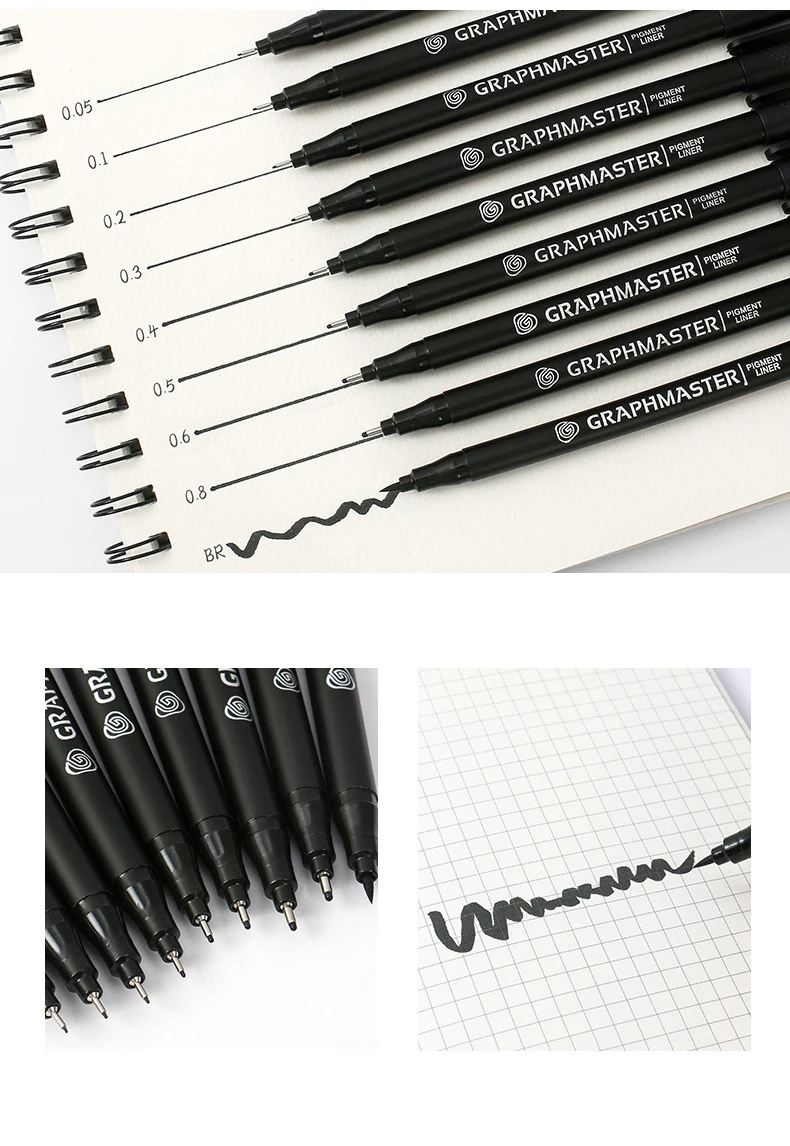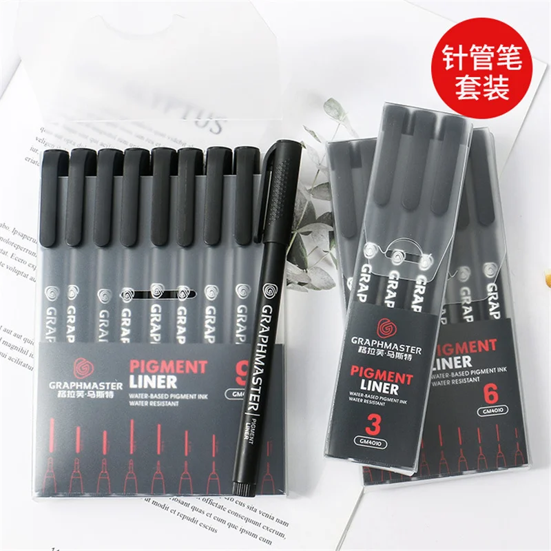 9 шт.компл., черный пигментный лайнер, водостойкая ручка для рисова...