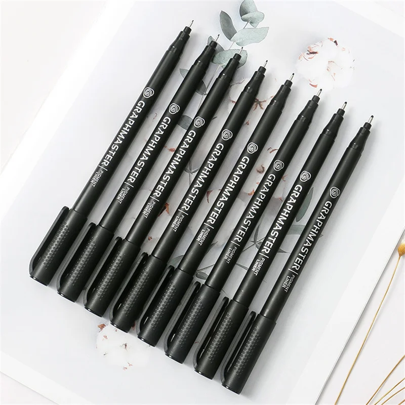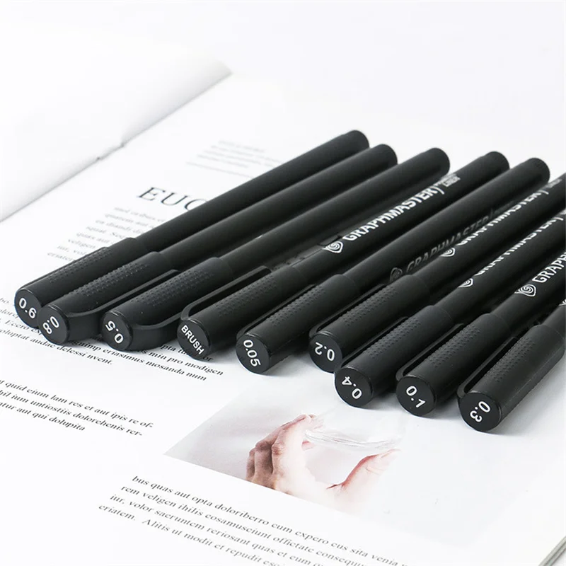 Набор черных пигментных маркеров для рисования, 9 шт.компл., быстросохнущие водостойкие школьные канцелярские принадлежности