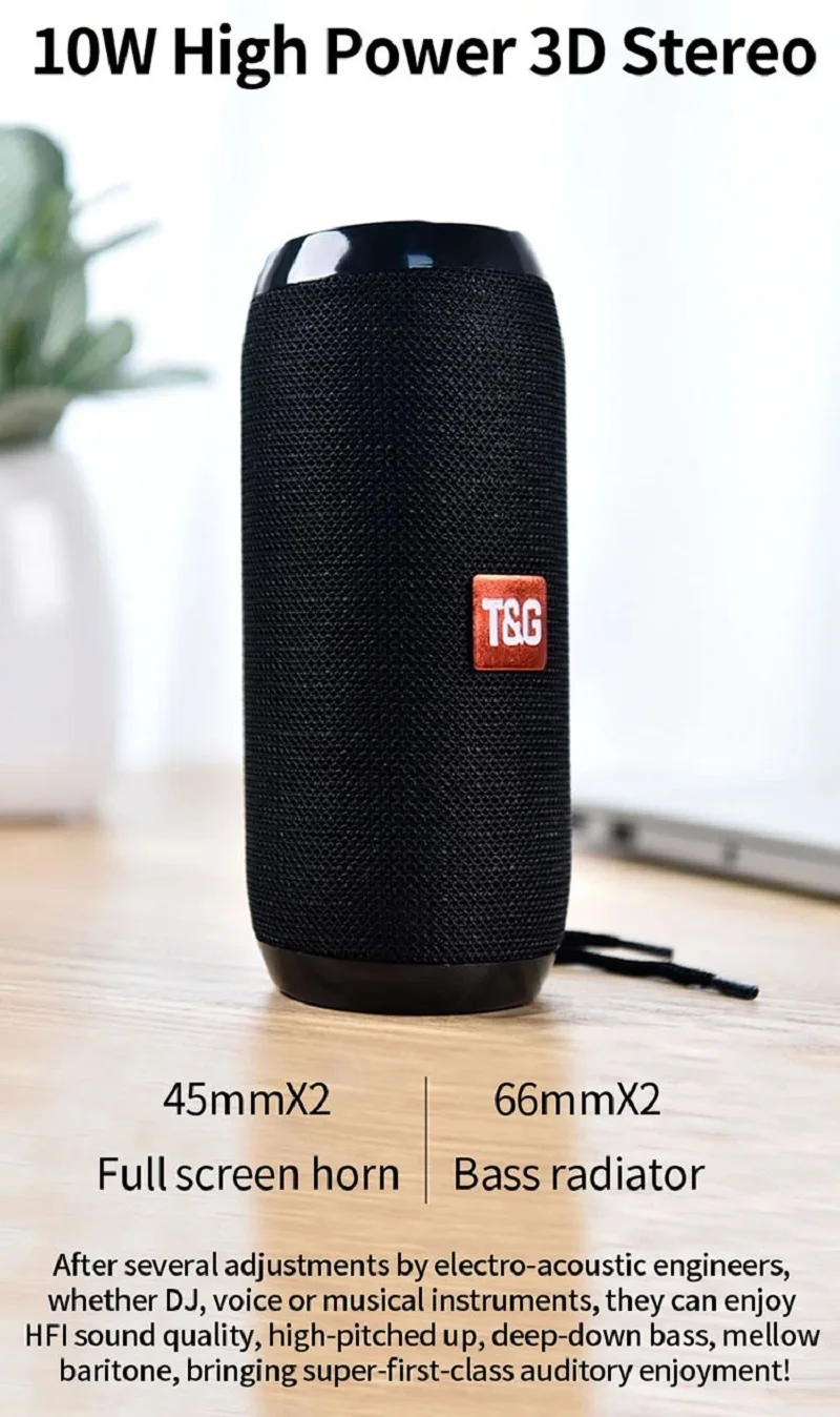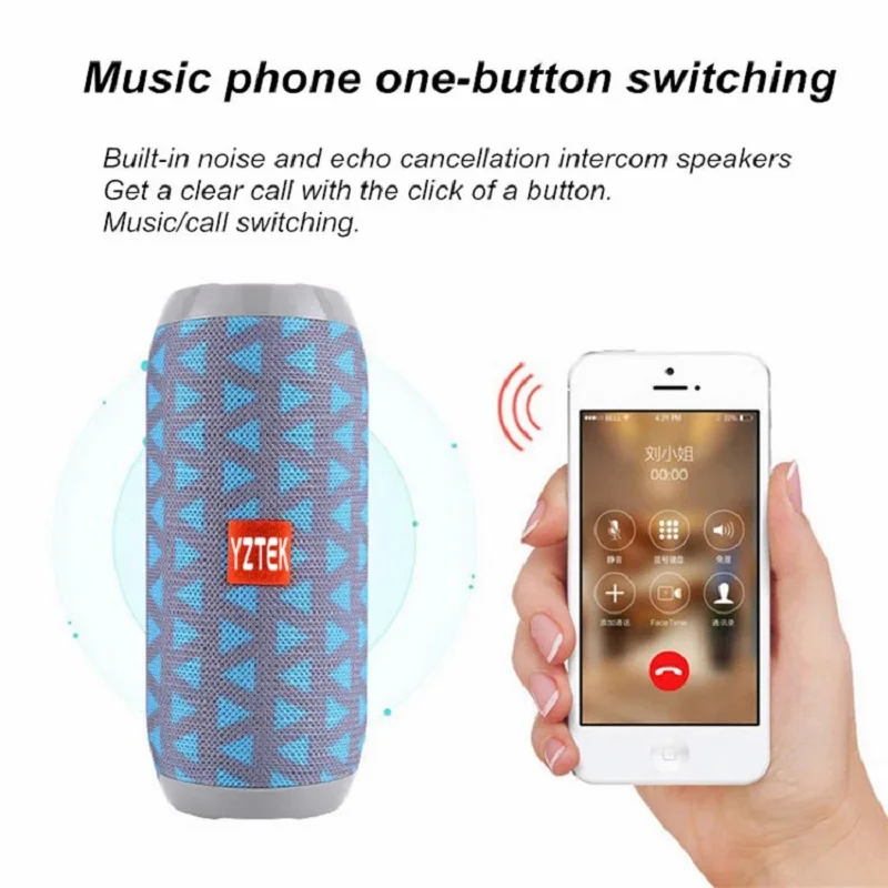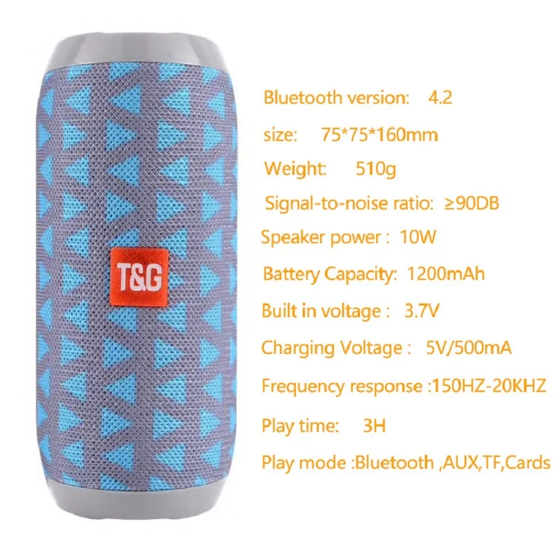 Характеристика:1. Новый товар и высокое качество.2. Сетчатая крышка для защиты динамика от воды, пыли, ударов.3. IPX5 водонепроницаемый, пыленепроницаемый, ударопрочный.4. 5 Вт * 2 большая мощность с двумя басовыми диафрагмами на каждой стороне, вибрирует при воспроизведении музыки.5. Цилиндрическая форма и встроенный левый и правый канал обеспечивают 360 ° стерео.6. Функция вызова, микрофон с шумоподавлением позволяет отвечать на звонки, не доходя до телефона.7. Fm-приемник позволяет свободно слушать радио.8. Поддержка MP3, WMA, WAV, FLAC, APE форматов музыкальных файлов.9. Поддержка tf-карты или sd-карты misro до 32G, поддержка USB 2,0 диска.10. Поддержка USB флеш-диска plug and play.11. Поддержка внешних MP3 / MP4/компьютера и других функций аудиовхода (AUX)12. Простое управление кнопками, вы можете нажать кнопки для включения/выключения, воспроизведения/паузы, режима переключения, пропускать песни, регулировать громкость и т. Д.13. Bluetooth 5,0, быстрое подключение и стабильный сигнал, Совместимость со всеми устройствами Bluetooth.14. Аккумулятор емкостью 1200 мАч до 10 часов воспроизведения при 2/3 громкости при полной зарядке.15. Это не только bluetooth-динамик, но и радио, проводной динамик, басовый бум-бокс.ПараметрыВерсия Bluetooth: 5,0Расстояние Bluetooth: <33 футаПоддержка: FM, tf-карта, вход переменного тока, U диск USB вход, 3,5 мм аудиовходаУвеличенная Память: 32G (не входит в комплект)Емкость аккумулятора: 1200 мАчВремя зарядки: 2-3 часаВремя прослушивания/разговора: 6-8 часовУровень водонепроницаемости: IPX5Параметры зарядки: 5 ВПоддержка музыкального формата: MP3, wav, wma, FLAC, APEЧастотная характеристика: 70 Гц-20 кГцОтношение сигнал-шум: 9595 дБЧастота искажений: <0.5%Материал: АБС-пластик, сеткаЦвет: черный, синий, красный, зеленый, камуфляжПосылка:Портативный Bluetooth динамик * 1USB кабель * 1Аудиокабель * 1