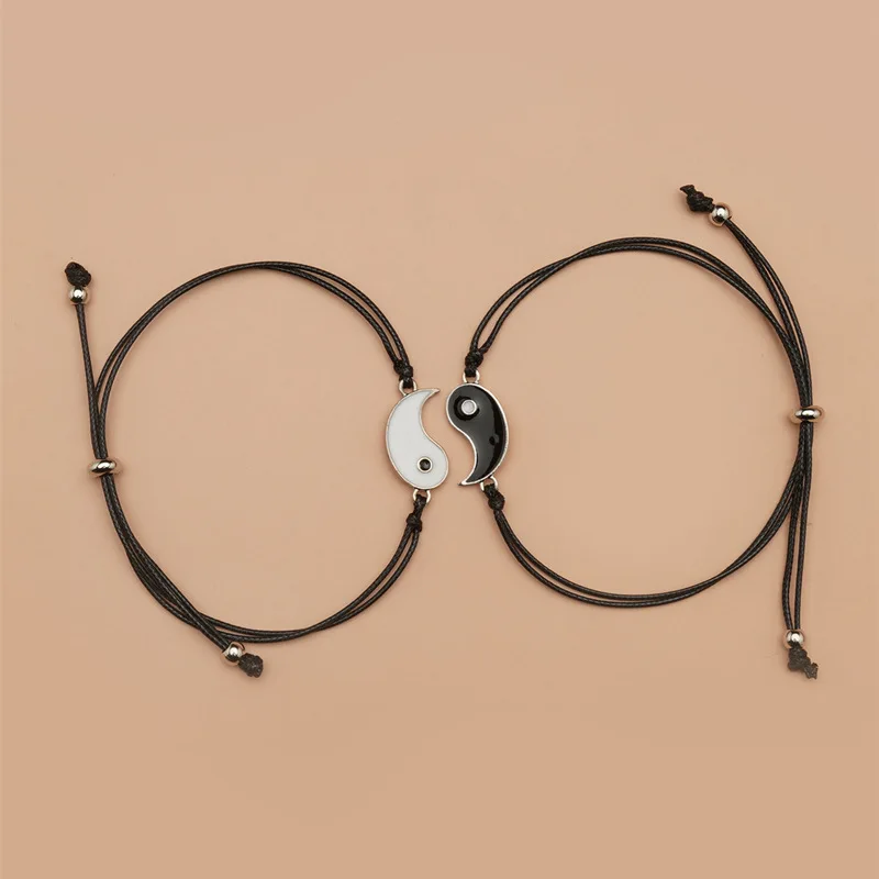 Браслет Yin Yang набор для пар дружбы бусины Браслеты унисекс Регулируемая Веревка цепочка на руку заявление ювелирные изделия ручной работы