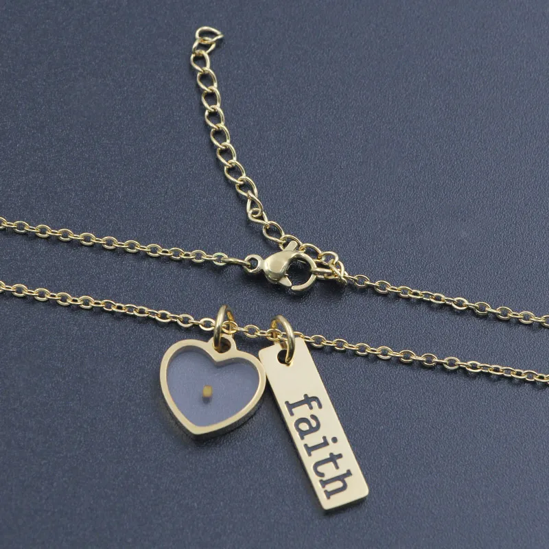 100% нержавеющая сталь + эпоксидная смола Длина цепочки: 45 см/18 дюймов, подвеска в форме сердца/круглая около 13 мм, подвеска веры 6*22 мм Хорошее качествоПокрытие и никогда не выцветает!