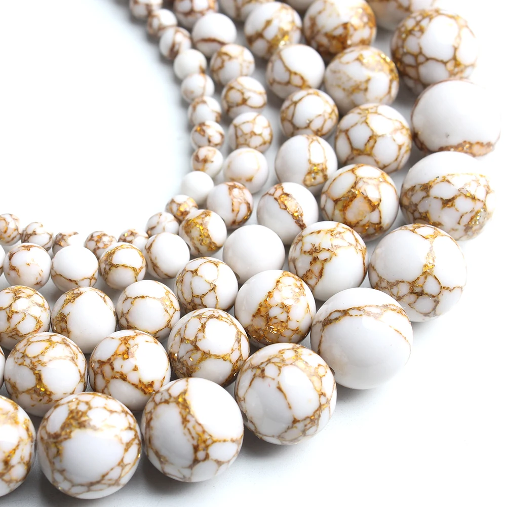 Круглые бусины Howlite из белого золота, нитка диаметром 15 дюймов,...