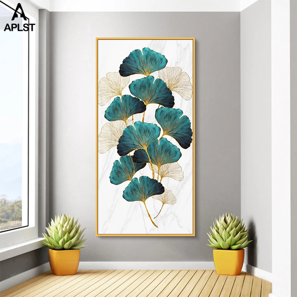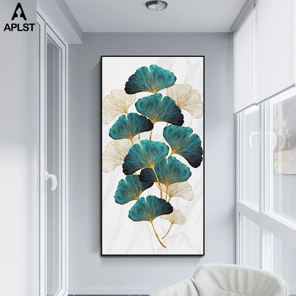 Картина из золотой фольги с листьями дерева, листьями гинкго билоба, холст, принты и плакат с зелеными растениями, Настенная картина, Декор для дома и гостиной