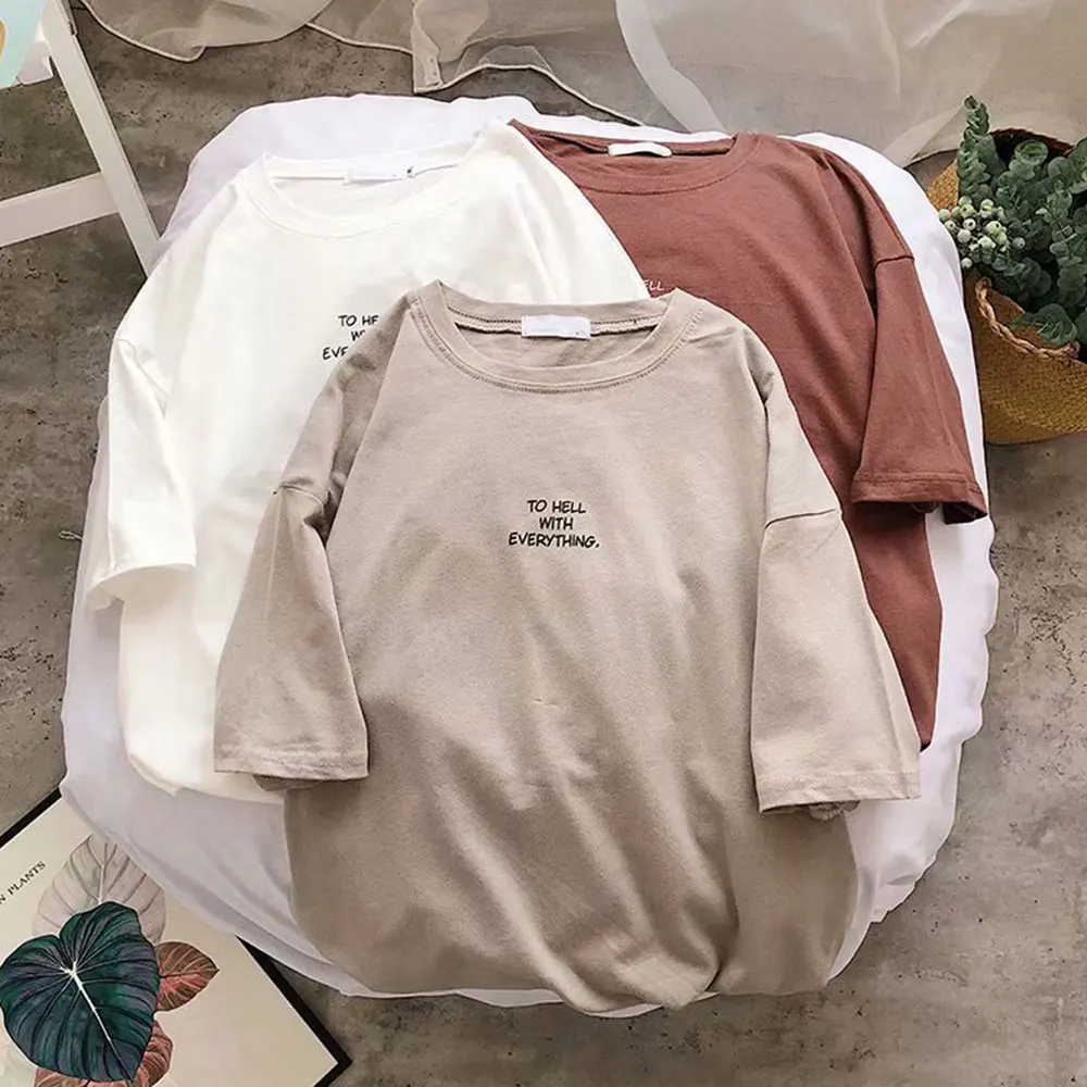 Femme футболки с короткими рукавами свободные Harajuku размера плюс 3XL с принтом букв Шик Просто все-матч Женская обувь в Корейском стиле Стиль кепки, кепки в стиле для отдыха