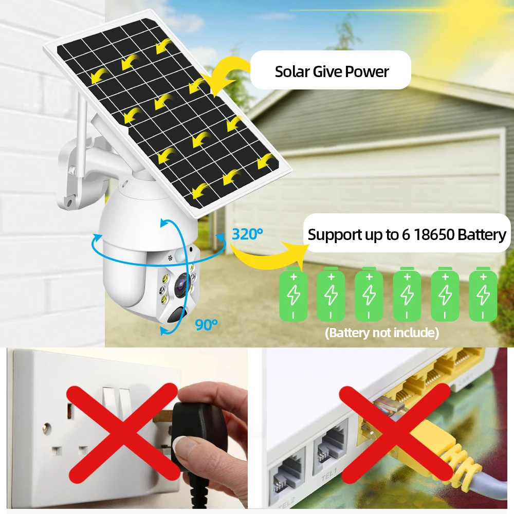 Нет источника питания? Нет сетевого кабеля? Вам нужна Солнечная камера 4g с батареей. Или WIFI Солнечная камера с батареей