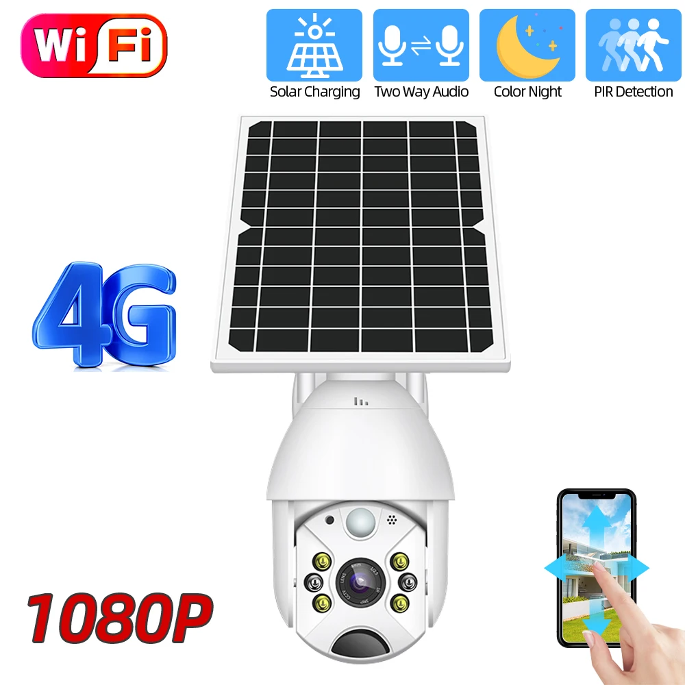 4G sim-карта IP камера наружная PTZ CCTV камера 1080P домашняя WIFI солнечная панель перезаряжаемая батарея металлическая камера безопасности PIR сигнализация