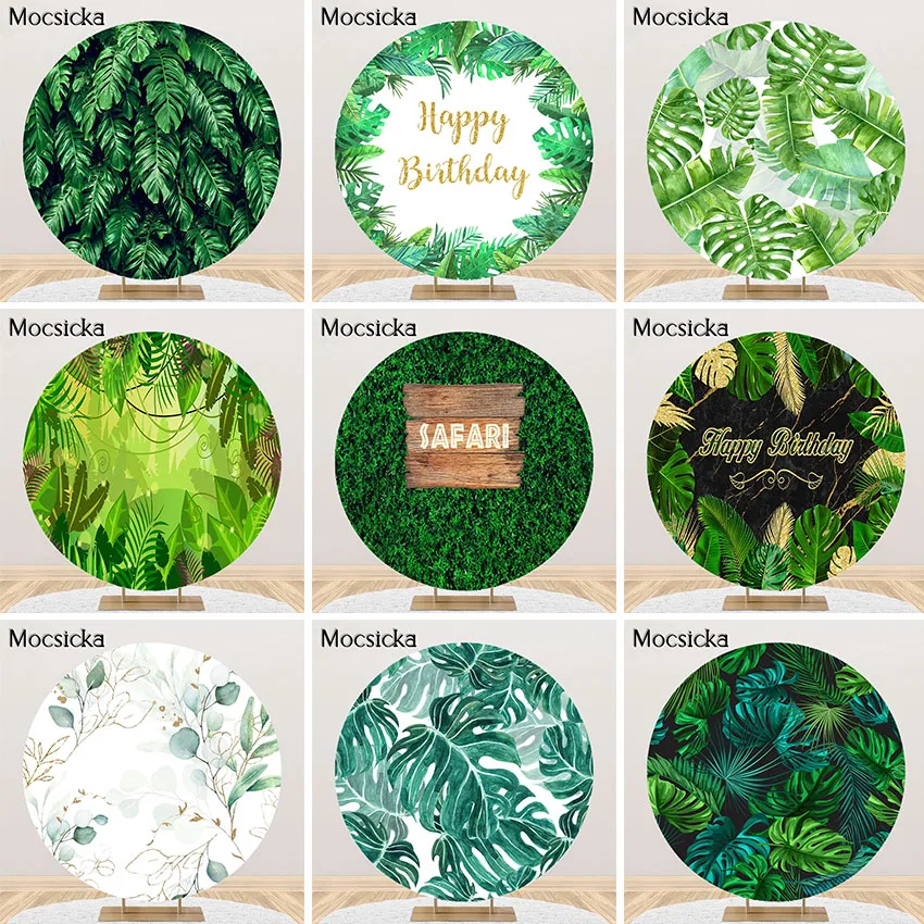 Mocsicka зелень фон с листьями Тропическое сафари зеленое нейтральное детское праздничное круговое эластичное покрытие для фотосессии