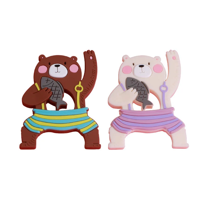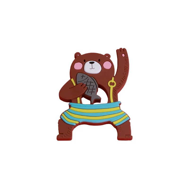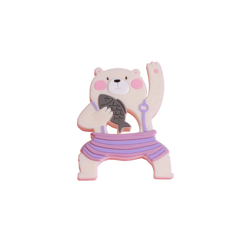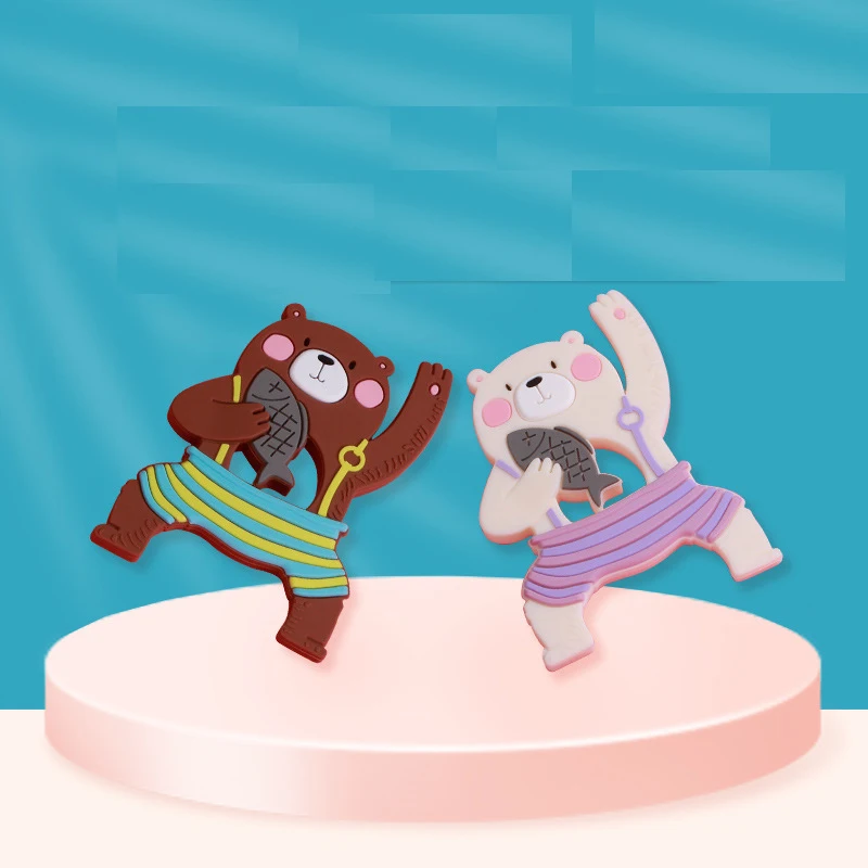 1 шт. Прорезыватель для зубов, мультяшный медведь с рыбой, животное из пищевого силикона, игрушки для зубов, крошечный стержень, детский Прорезыватель для зубов, подарок