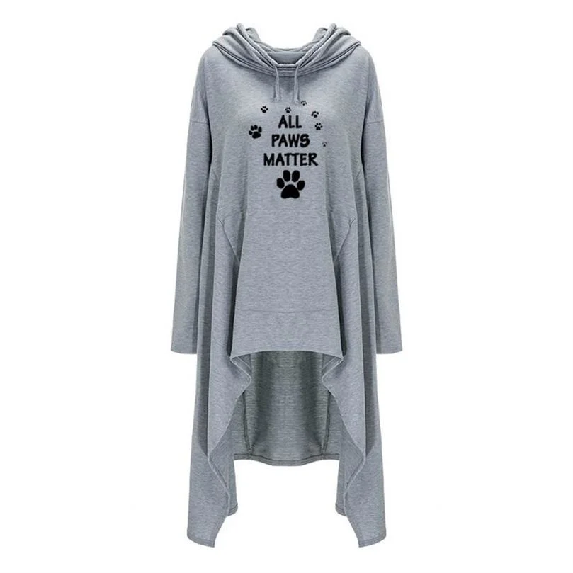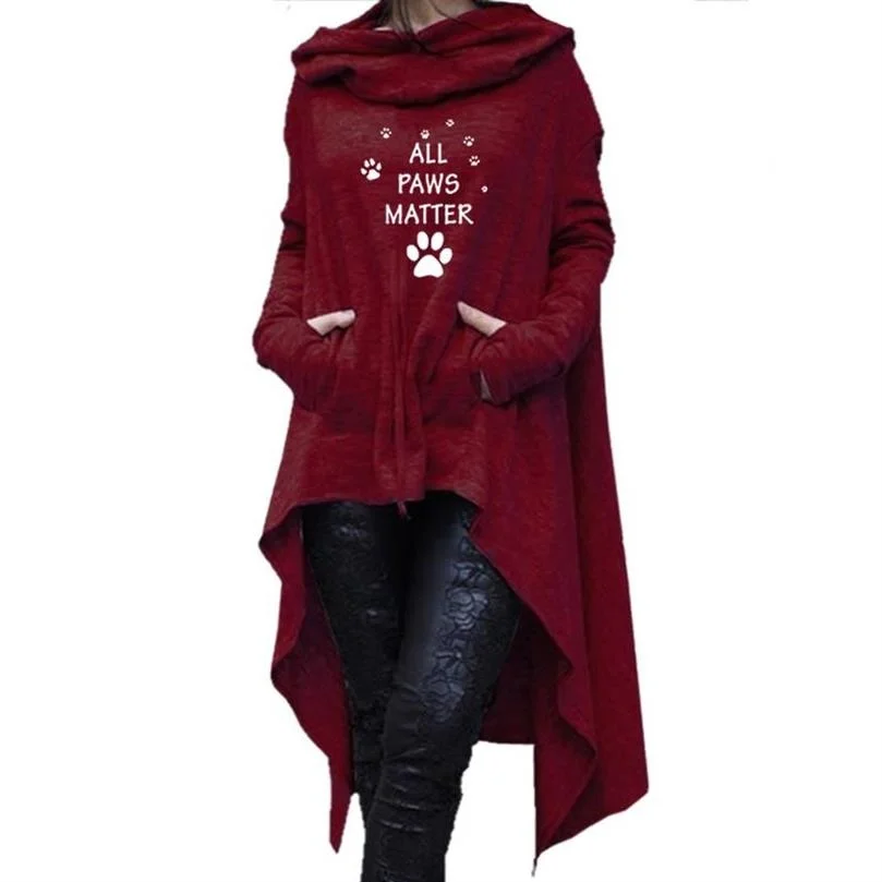 Модные женские толстовки с длинным асимметричным подолом на весну и осень, толстовки с принтом лап, надписей, милые свободные толстовки с карманами в стиле Харадзюку