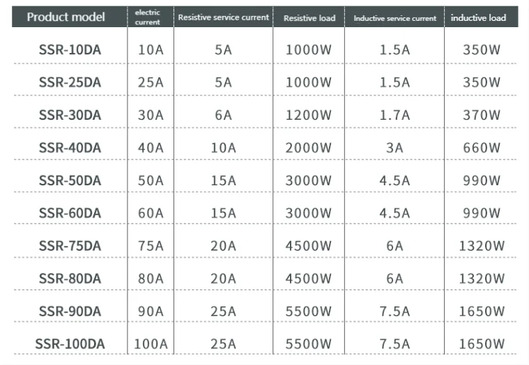 Номер моделиSSR-10DA/SSR-25DA/SSR-40DA
