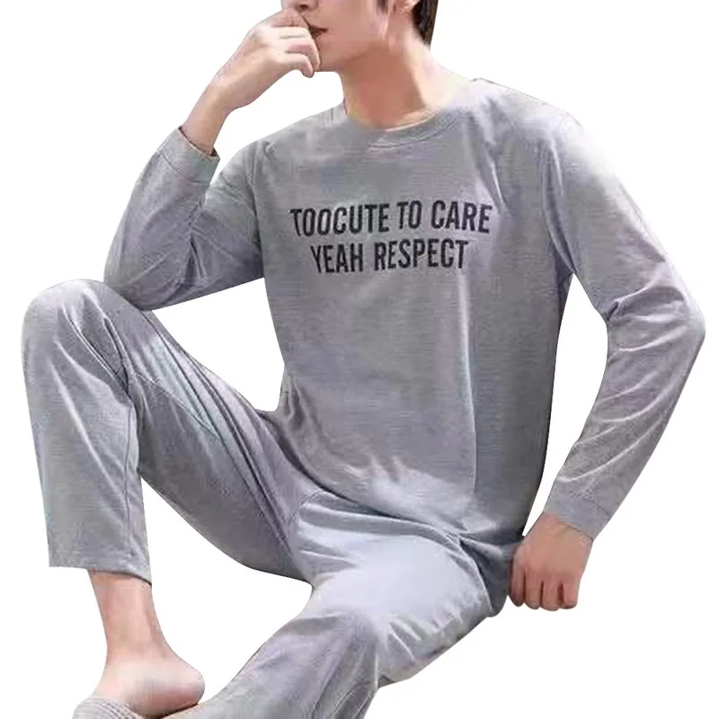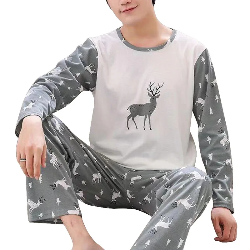Хлопковый пижамный комплект с длинным рукавом для мужчин, милая мул...