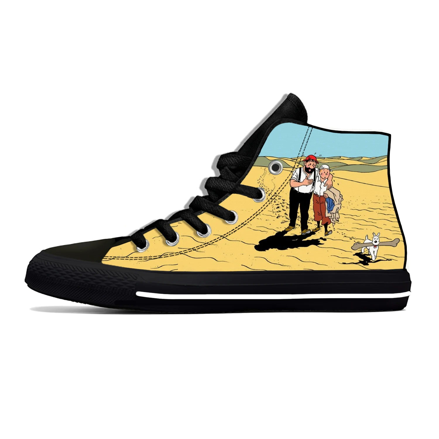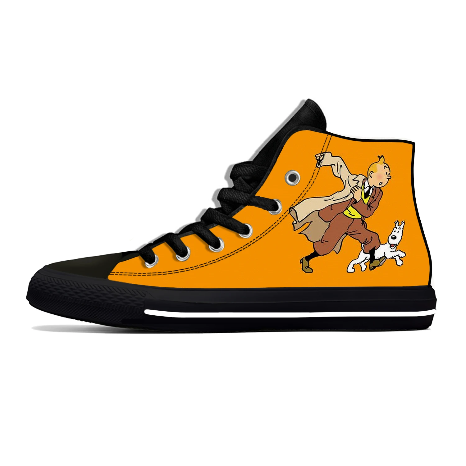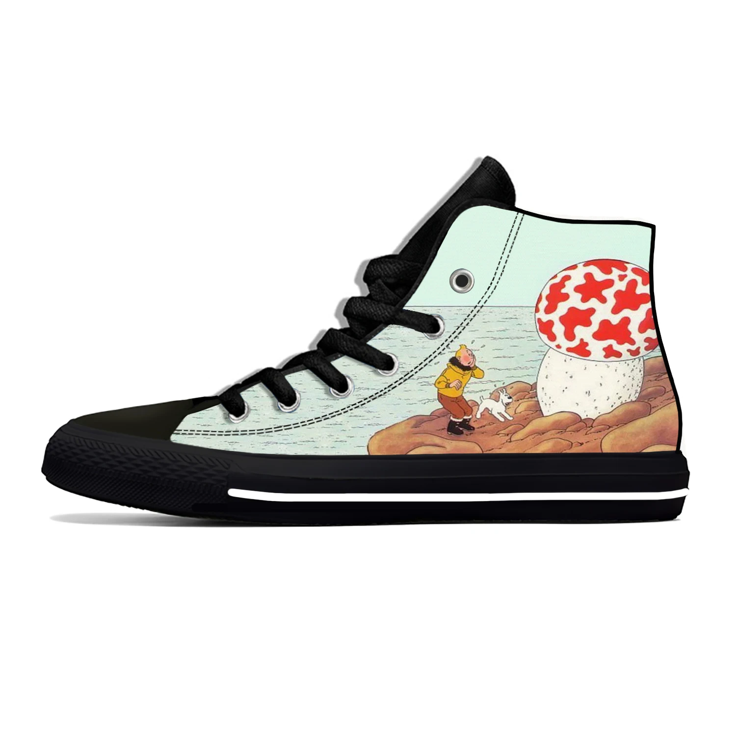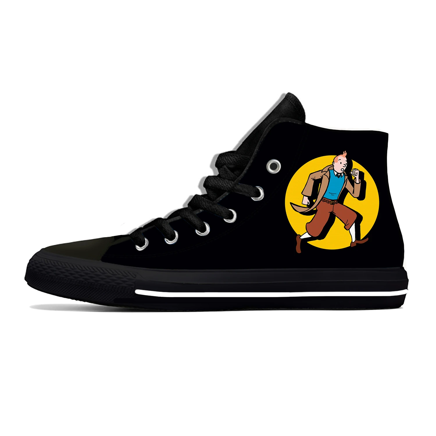 Кроссовки мужскиеженские высокие, забавная Повседневная Тканевая обувь с аниме приключения Тинтин, с мультяшным рисунком, легкие дышащие кеды с 3D принтом